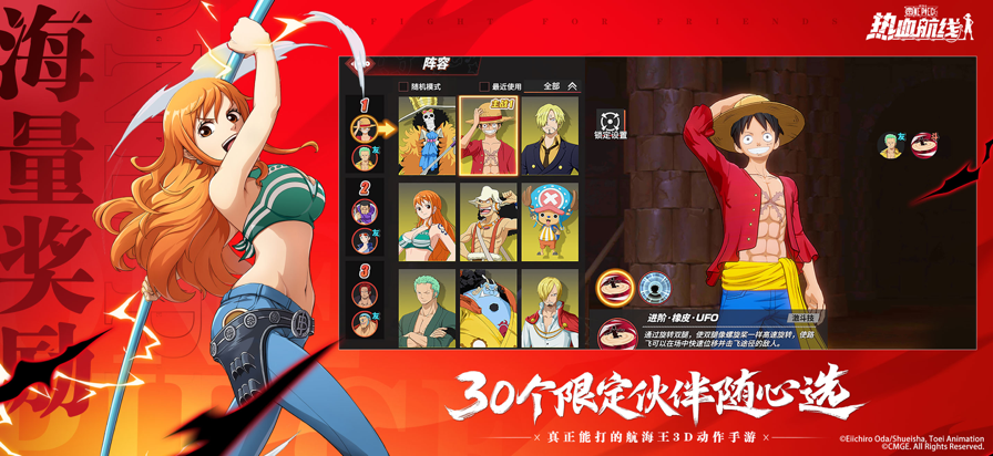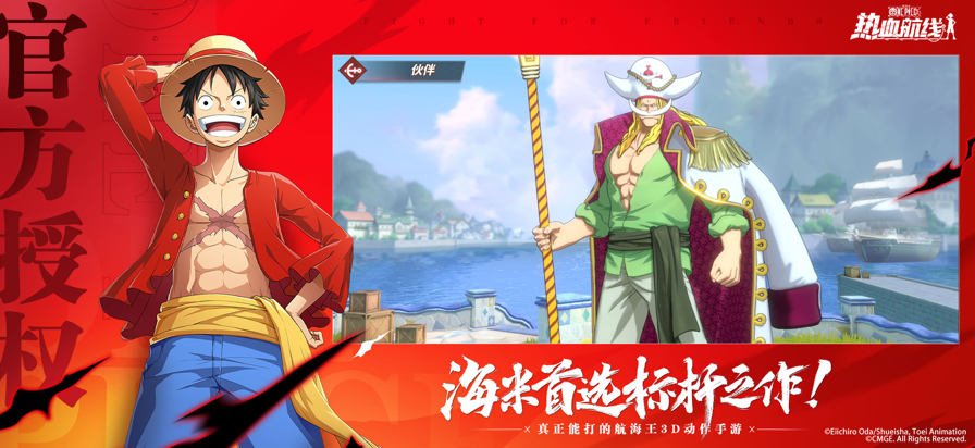 真正能打的航海王3D动作手游! 《航海王热血航线》是一款东映动画正版授权,千万海米首选! 游戏力求还原伙伴的技能设定和华丽特效,为玩家带来酣畅淋漓的动作体验,PVP竞技场放肆开打,全视角3D战斗霸气出招!在游戏中,你还可以重温原著动画剧情,收集超强力伙伴,自由探索奇幻海域,体验立体还原的沉浸式航海世界。 出发!“航海王我当定了!” 【正版还原】官方授权,海米首选标杆之作! 东映动画正版授权,极致还原伙伴的每个技能设定,打造酷炫华丽的战斗特效,带来热血畅快的动作体验……力求为玩家呈现出前所未有的高品质航海王IP手游巨作! 【热血动作】霸气出招,全视角战斗放肆开打! 我喜欢的伙伴怎能被动挨打,主动出击才是勇敢的海上战士!组合、连招、走位、出拳、释放……在竞技场酣畅战斗,享受动作爽感!1V1、3V3、阵营攻防、多人PK……即刻开打,秀出高光时刻! 【伙伴收集】强者登场,组建超能打航海团! 收集强力伙伴和心仪船只,随心组建最强航海团!在游戏对战中,玩家可以召唤喜爱的伙伴一同战斗——毕竟,并肩作战、才是伙伴的真正含义! 【3D全景】高精建模,航海世界触手可及! 还原度max,精细到每栋房屋,让玩家体验一个真实立体的航海王世界!完整海域地图、原版声优配音,仿佛裸眼穿越航海王世界,无论是阿拉巴斯坦的漫天黄沙,还是七水之城的粼粼波涛,尽在热血航线! 【海域探索】自由探索,随机事件才是真冒险! 航海王当然要自由冒险!超大海域,纵情航行,翻越颠倒山,飞上天空岛,探秘深海监狱,挑战海兽采集挖宝,触发随机新奇彩蛋!看到那根晃动的指针了吗?那就是冒险的下一个目的地! —联系我们— 官方抖音:航海王热血航线 官方微信:航海王热血航线 官方微博:航海王热血航线 官方频道:航海王热血航线官方频道 ©Eiichiro Oda/Shueisha, Toei Animation ©CMGE. All Rights Reserved.