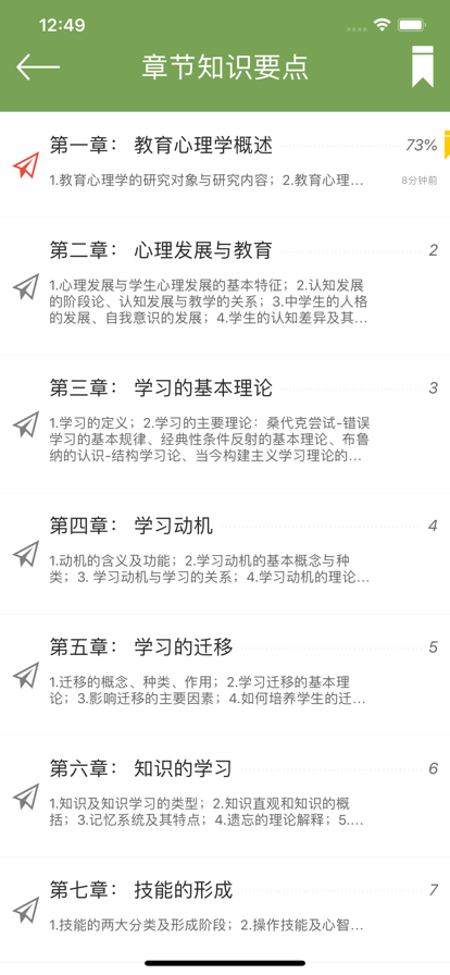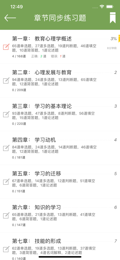 教育心理学题库包含了教育心理学章节同步练习题、章节同步知识要点,部分来源于历年教师招聘考试试卷试题及教师资格证考试试题,是教师招聘考试教师资格证考试复习好材料。无需联网,随时随地碎片化学习。 【教育心理学分章节内容】 第一章: 教育心理学概述 1.教育心理学的研究对象与研究内容;2.教育心理学在实际教学中的作用;3.教育心理学的发展概况;... 第二章: 心理发展与教育 1.心理发展与学生心理发展的基本特征;2.认知发展的阶段论、认知发展与教学的关系;3.中学生的人格的发展、自我意识的发展;4.学生的认知差异及其教育含义;5.学生的性格差异及其教育含义;... 第三章: 学习的基本理论 1.学习的定义;2.学习的主要理论:桑代克尝试-错误学习的基本规律、经典性条件反射的基本理论、布鲁纳的认识-结构学习论、当今构建主义学习理论的基本观点;... 第四章: 学习动机 1.动机的含义及功能;2.学习动机的基本概念与种类;3. 学习动机与学习的关系;4.学习动机的理论及培养;... 第五章: 学习的迁移 1.迁移的概念、种类、作用;2.学习迁移的基本理论;3.影响迁移的主要因素;4.如何培养学生的迁移能力;... 第六章: 知识的学习 1.知识及知识学习的类型;2.知识直观和知识的概括;3.记忆系统及其特点;4.遗忘的理论解释;5.运用记忆规律,促进知识保持;... 第七章: 技能的形成 1.技能的两大分类及形成阶段;2.操作技能及心智技能的培养要求;3.心智技能形成的有关理论;... 第八章: 学习策略 1.学习策略的构成;2.学习策略训练的原则与方法;3.教学中如何运用学习策略;... 第九章: 问题解决与创造性 1.问题解决的过程;2.影响问题解决的主要因素;3.培养解决问题能力的有效措施;4.创造性的基本特征及培养策略;... 第十章: 态度与品德的形成 1.品德及其结构;2.皮亚杰与柯尔伯格的道德发展阶段理论;3.中学生品德发展的基本特征;4.影响态度与品德形成的基本条件;... 第十一章: 心理健康教育 1.心理健康的标准;2.影响学生心理健康的因素;3.心理辅导与咨询的目标、原则及方法;... 第十二章: 教学设计 1.教学目标的分类及表述方法;2.运用指导教学法和发现教学法设计课堂教学;3.个别化教学的基本环节及模式;... 第十三章: 课堂管理 1.群体动力的概念和要素;2.课堂气氛的影响因素;3.课堂管理的策略;4.问题行为的主要对策;... 第十四章: 教学测量与评价 1.标准化成就测验的含义和特点;2.自编测验的含义和特征;3.非测验评价技术;4.教学评价结果的处理与报告;... 第十五章: 教师心理 1.教师应具有的特征;2.教师期望的效应;3.专家型教师与新教师的差异;4.教师成长的历程;5.教师成长与发展的基本途径;... 【教育心理学历年考试真题及模拟题专项练习 共5497道试题】 教育心理学(单项选择题)专项练习(2014题) 教育心理学(多项选择题)专项练习(604题) 教育心理学(判断题)专项练习(140题) 教育心理学(填空题)专项练习(1289题) 教育心理学(简答题)专项练习(370题) 教育心理学(论述题)专项练习(153题) 教育心理学(案例分析题)专项练习(27题) 【功能介绍】 一、教育心理学章节同步练习题库及章节同步知识要点:模块清晰,有答题与背题两种模式,每道题通过卡片显示、试题目录,漂亮美观。 可以点击加入收藏、有答错提示、查看每题对错一目了然、清空重做本份章节、做题进度与时间、阅读进度、书签等功能。 二、错题库:做错的试题会自动加入到错题库,也可以在错题库里移除加入的错题,通过页码滑片来快速浏览错题,非常方便! 三、收藏功能:在做题或浏览题过程中,可加入试题到我的收藏,在收藏中也可以移除。 四、统计数据及图表:我的成绩及每日学习统计。 五、定期更新试题及知识要点。
