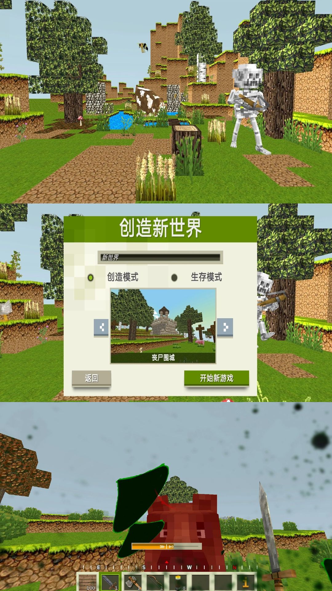 游戏是一款经典的沙盒生存冒险游戏 游戏中,玩家拥有高度的自由度,无论是建造、采集、狩猎、漫步,一切随心所欲,想干什么就干什么。 当然,玩家也需要时刻注意从四周跑来的猛兽,制作武器防具,打败怪兽,才是生存下来的唯一法则。 快来经典的沙盒世界试试吧!