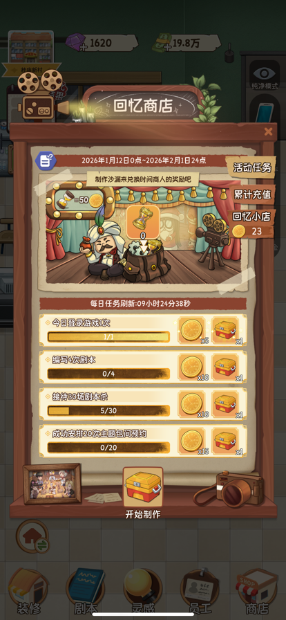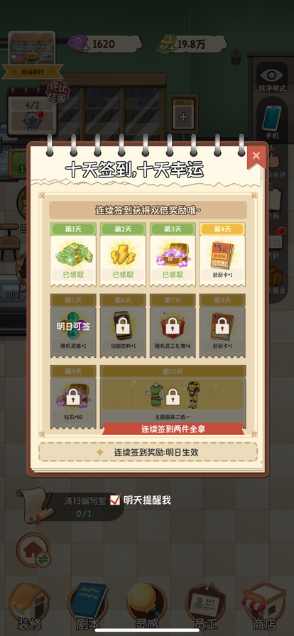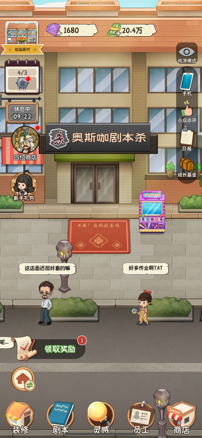 终于有机会开一家剧本杀店了!作为店长,你可以: 【把店铺装修成各种风格】 从小小破店发展成豪华店铺,工业朋克、复古外滩、典雅中式、神秘古堡、太空游历、童话森林、夏日海滩、新式和风……数千件主题装修任你搭配! 【拥有八种题材的丰富剧本】 开剧本杀店,海量的剧本是必不可少的,雇佣写手写剧本、向定期来访的剧本商人购买剧本,填满店内的剧本架吧! 【招聘来自五湖四海的员工】 主持人(DM)、剧本写手、收银员、清洁工、迎宾……每名员工都有自己的过去,来到这家剧本店后,又会发生什么故事呢? 【管理店铺事务,控制支出提升收入】 给写手提供写作灵感、补充店铺零食、回复顾客的评价留言、审阅经营日报、跟随老黄历的建议进行决策……忙碌并快乐的经营体验! 【从城中村,向别墅进发】 一开始先省点钱,暂时开在城中村,等赚了钱了,向城里不断搬迁!