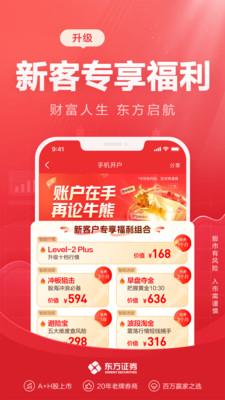 新客专享·价值【1896元】福利,等您来拿! 新客专享【智能工具组合】: - Level-2Plus:升级版十档行情工具 - 波段淘金:AI捕捉波段机会 - 早盘夺金:把握早盘黄金10:30 - 避险宝:股市避雷针 新客专享【理财产品】: 3.88%-6.88%到期年化收益率,多款产品任选! 新客专享【金元宝(积分)】: 首次签到领200金元宝(积分),惊喜礼盒等您开启! *市场有风险,投资需谨慎。 东方证券股份有限公司具有业内知名投资管理能力,是国内第五家A+H股上市券商。 东方赢家是东方证券自主研发的移动端一站式股票交易与理财平台。它不仅仅是一款出色的手机炒股软件,还提供了理财与相关咨询类服务。 东方赢家支持实时股票行情查询、安全快速的股票交易、便捷高效的理财管理、港股通、行业资讯、智能客服等功能,同时也为新客户提供了快速开户申请入口,让所有的东方证券用户都能享受一站式券商服务。此外,凭借东方证券集团的综合金融平台优势,让您随时随地享受股票交易和理财的双重优质服务,实现功能轻松跳转,投资需求切换自如,感受到真正的投资乐趣。