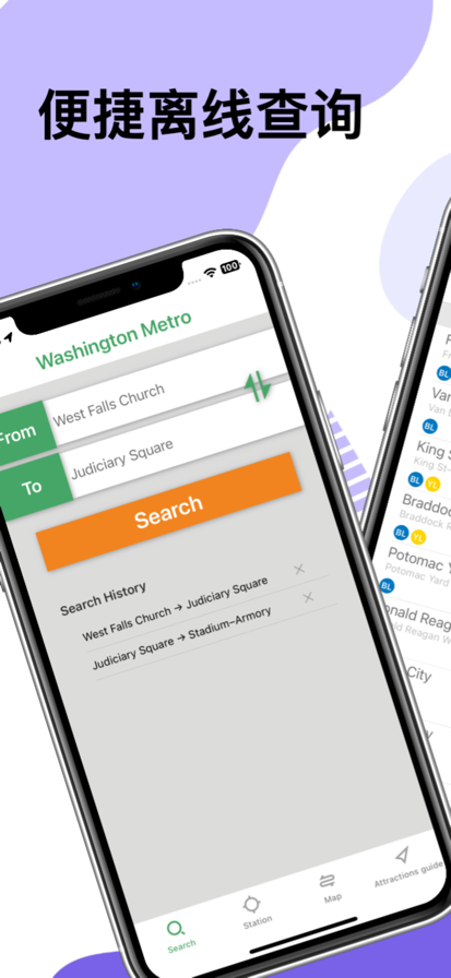 Washington DC Metro and Bus is the region's most popular dedicated DC transit app. Realtime rail and bus predictions and DC Metro map directly from WMATA (Washington Metropolitan Area Transit Authority), ART (Arlington Transit) and DC Circulator, serving Washington DC, Northern Virginia and Maryland. -Realtime DC Metro Rail predictions (Next Train) for every Metro station in the Washington DC region with auto refresh direct from WMATA. -Realtime DC Metro Bus (Next Bus) predictions for every Metro bus stop in the Washington DC region with auto refresh direct from WMATA. -Realtime data for ART bus (Arlington Transit) -A personal AI Assistant to answer your questions about the region's transit system. -Serving the entire Washington DC Metro area. -Location based Metro station finder to locate Metro stations nearby. -Location based bus stop finder to locate Metro bus stops nearby. -Mapping for Washington DC Metro rail stations and bus stops. -Save commonly used Metro stations and stops into your Favorites list for easy access. -Look up DC Metro bus stop predictions directly by the bus stop number. -Check to see if WMATA is broadcasting any rail alerts or disruptions. -Access the WMATA DC Metro map to plan your route. -And of course, FREE Upgrade with a Premium Access subscription and get rid of the ads. You must have network access to use these resources. This app is not published, sponsored or approved by WMATA. Terms of Use (EULA): https://www.apple.com/legal/internet-services/itunes/dev/stdeula/