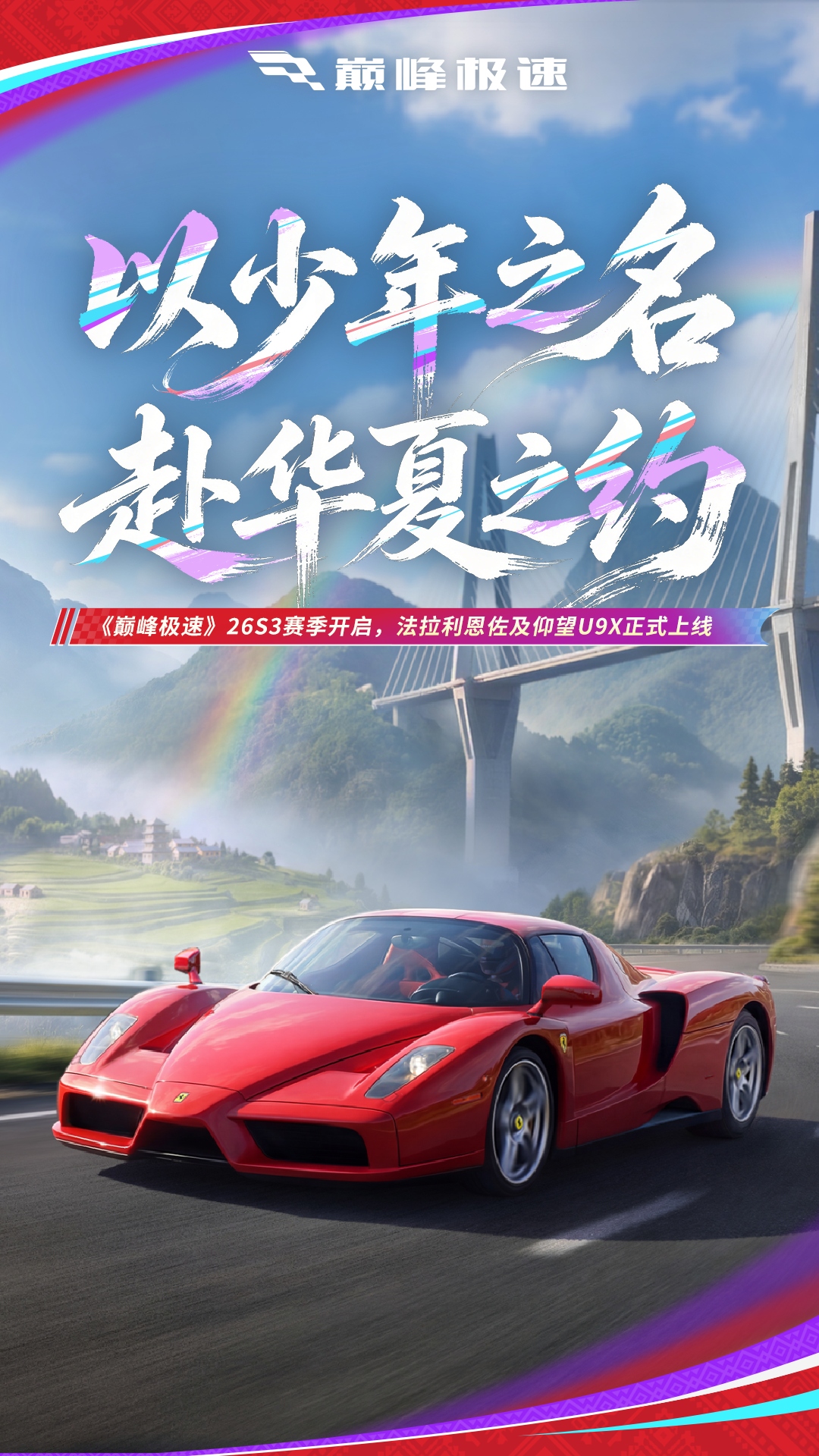 《巅峰极速》26S3赛季全新开启!以少年之名,赴华夏之约!登录免费送超190抽、全新限定传奇&专属共创套件!更有全新中国文旅赛道「贵州」、全新性能组典藏传奇「法拉利 Enzo」、全新极限组限定传奇「仰望 U9X」限时推出,带你一起趣游华夏!《巅峰极速》×《飞驰人生3》联动即将进入尾声!即刻登录送电影同款座驾「奥迪 A3」,同步推出联动主题赛道「沐尘100」、「巴音布鲁克」,沉浸体验飞驰热血拉力对决!<br><br>引擎轰响,我的主场!<br>《巅峰极速》是Codemasters®深度合作,网易游戏自研的巅峰品质极速赛车游戏,取得了全球40多个主流车厂的正版授权,得到了包括法拉利、兰博基尼、保时捷、布加迪、帕加尼在内的超100款一线的车辆技术数据和资料。每一台车,包括其改装零件、套件,均在原厂严谨监修下完成。玩家将可以自由收集、改装100多款正版授权豪车;可以驰骋在哈尔滨、白云山、重庆、上海、纽北、芝加哥、巴塞罗那、西西里岛等全球街区与专业赛道上,体验沉浸光影与真实轰鸣声带来的沉浸感;还能够参与越野赛、多车排位赛、追逐赛、对抗公开赛、俱乐部耐力赛等丰富竞速玩法,与其他玩家进行实时的竞速对决,成就竞速巅峰!