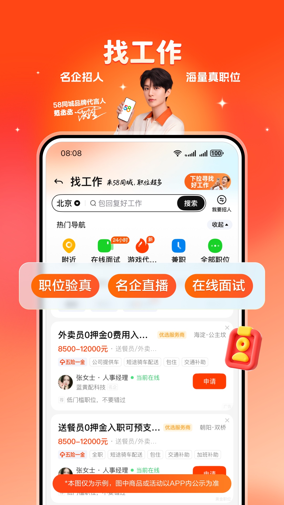 人人信赖的生活服务平台,海量生活信息免费查询、发布。 房屋租售、二手买卖、招聘求职、买卖二手车、汽车租售、宠物票务、餐饮娱乐,覆盖全国所有大中城市,汇聚大量个人和商家信息。 真实、高效、免费,本地生活服务大全,让您生活更简单! 【产品特点】 高速浏览,一键拨号: 无需等待,信息即刻呈现。 电话/短信/帮帮,一触即达。 附近信息,轻松获取: 身边的生活信息,一键查询。 支持地图模式查找信息。 记录足迹,智能便捷: 自动记录访问类别、筛选条件、拨打历史。 智能推荐信息,比你更懂你。 生活助手,轻松生活:找代驾,找优惠,评估二手车、提供快递查询,房贷计算器。只为你能发现,我想在你身边。 海量房源,商业地产:大平台房源全,覆盖多种新房、租房、二手房、别墅、公寓、商铺写字楼出租出售。 【与我们交流】 新浪微博:http://weibo.com/58tckhd 客服邮箱:wuxianservice@58.com 微信公众号:58同城 五八信息技术有限公司版权所有 麻烦您在评论反馈时留下联系方式,以便我们能迅速为您解决问题! 感谢您对58同城的支持,祝您生活愉快