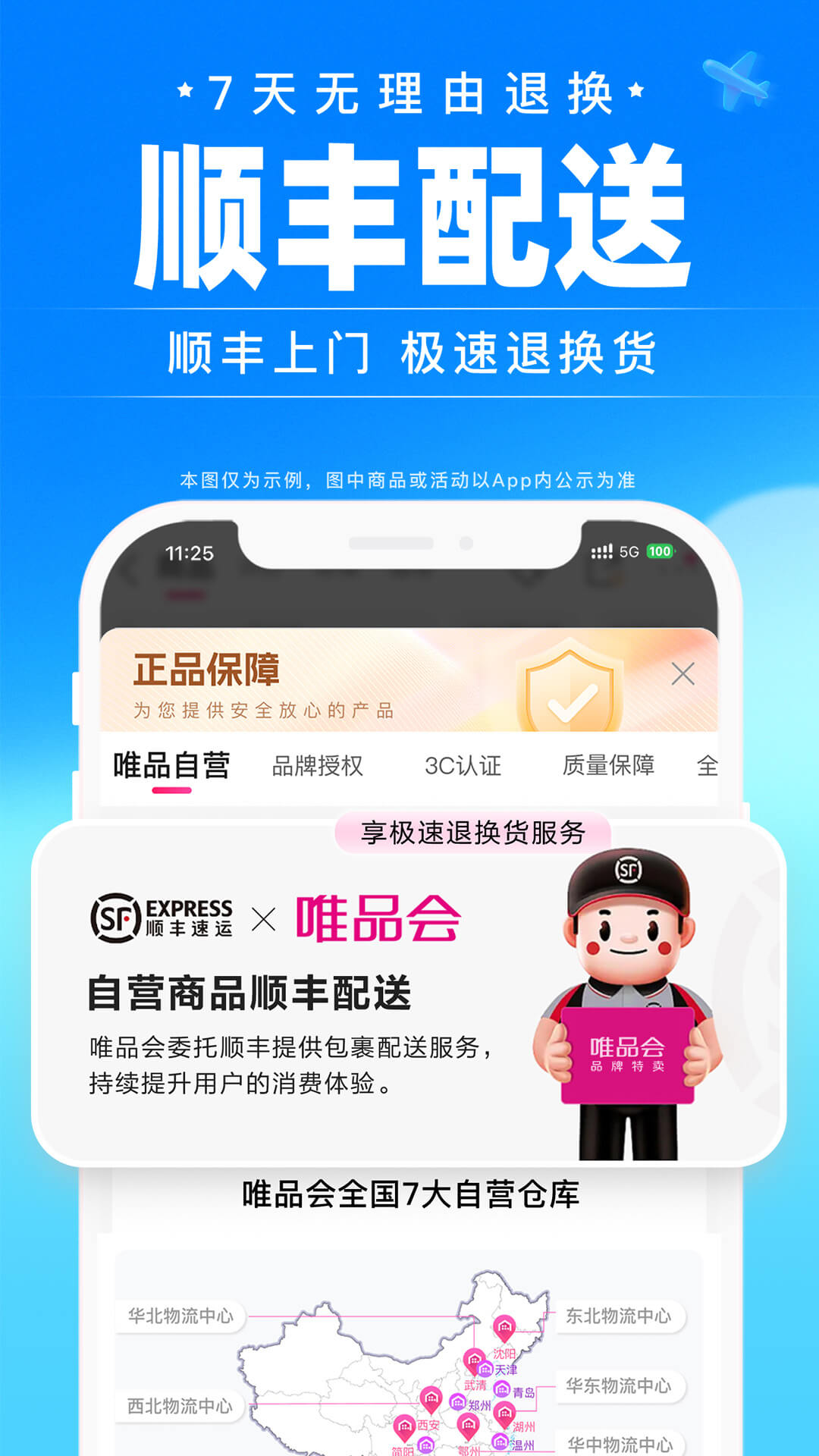 上唯品会,大牌衣服3折买! 专注服装品牌特卖,大牌衣服品牌源头采买,100%正品保障。 【正品保障 顺丰包邮】 唯品会与各大品牌建立长期战略合作,品牌源头采买,同时还和中检成立联合鉴定实验室,确保每一件商品都是100%正品。 自营商品顺丰配送,尺码不合适不用怕,顺丰上门退换货非常方便。 【限时狂秒 每日上新】 限时狂秒每天早十点和晚八点上新,精选爆款商品进行官方大额补贴,超低到手价超划算。 【购物体验 实力保障】 人工客服天天在线,每天9:00~24:00贴心在线为你服务; 7天无理由退货,自营商品免费上门收件(自行寄回返10元唯品币); 还有自营商品满88元包邮,全年无限次! 【新人享豪礼,欢迎体验】 唯品会新人福利活动仅限唯品会平台新人用户参与,新人用户是指未在唯品会平台下过有效订单的用户,新人福利活动仅限受邀用户参加,此活动长期有效,参与路径为APP首页。 【意见反馈】 如有建议,请随时反馈,唯品会时刻倾听您的声音: 官方微博:@唯品会 官方微信:“唯品会” 唯品会客户端:个人中心-唯品客服-APP反馈