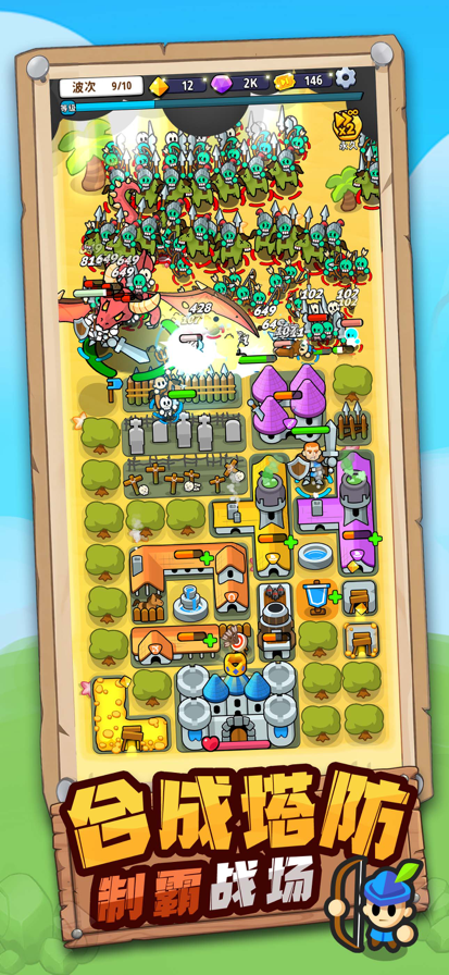 黑暗势力兵临城下,您的城堡正面临前所未有的威胁。作为指挥官,您需要运用智慧与策略,构筑坚不可摧的防线,保卫您的王国。 这是一款将经典塔防与创新合并机制相结合的策略体验。您不再需要漫长地等待升级,只需通过简单的拖拽与合并,即可将两个相同的防御建筑即时融合成一个更高级、更强大的单位。在瞬息万变的战场上,动态调整并强化您的防线。 【创新的合并防御】 将相同的防御单位进行合并,即可完成即时升级。亲眼见证您的兵营、箭塔和魔法哨所在您手中不断进化,以更强的火力应对更严峻的挑战。 【深度的策略布局】 数十种拥有不同能力的防御单位供您选择和搭配。面对形态各异、能力多端的敌人,您需要合理规划阵型,利用单位间的互补优势,制定出克敌制胜的完美战术。 【丰富的随机技能】 每成功抵御一波进攻,您都将获得一次选择随机增益的机会。是强化特定兵种的攻击力,还是提升整体的经济收益?每一次抉择都将深刻影响后续的战局,为您的防御之旅带来无穷的变数与重玩价值。 【英雄养成与装备锻造】 除了部署防御塔,您还可以培养一位核心英雄。为他收集并合成强大的套装装备,解锁专属效果。一位精心培养的英雄,将成为您在战场上扭转乾坤的关键力量。 现在,是时候展现您的指挥才能了。立即开始部署您的防御,击退所有入侵者,成为王国的传奇守护者。