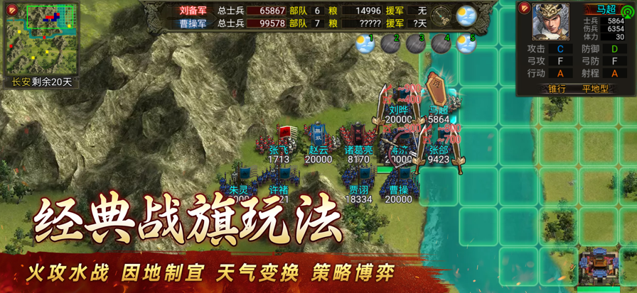 >> 限时活动:下载即送“超值大礼包”建功立业快人一步! >> 单机军政玩法佳作,经典战棋玩法 >> 30个单机剧本,49张战场地图,8个经典战役,数百名武将 这是我们开发的一款单机玩法SLG, 借鉴和学习了《三国志》、《霸王的大陆》系列, 内容丰富耐玩,上手后极易沉迷。 === 游戏特点 === 丰富的战斗阵形和技能, 在战斗场景中山河、湖泊、城关等不同地形上有变化多端的战术组合, 加上天气系统对战局的影响,使得战场玩法极具特色。 根据面对敌人的情况不同, 不同战术可以形成各自的打法流派, 常见的如抢城速攻流、近战突击流,单挑控制流、远射连珠流等等。 数十万字原创游戏文本,全部源自制作团队对相关史料的分析提炼, 各种武将列传、轶事;各地的背景介绍,皆有可靠的依据出处。 玩家玩游戏的同时能感受到那个时代的文化气息、社会风貌, 从更丰富的层面带玩家领略浓厚的历史人文精神。