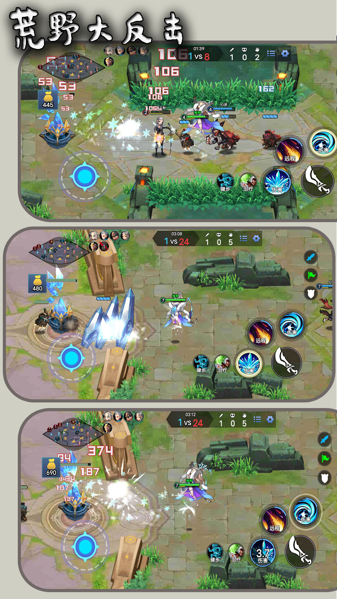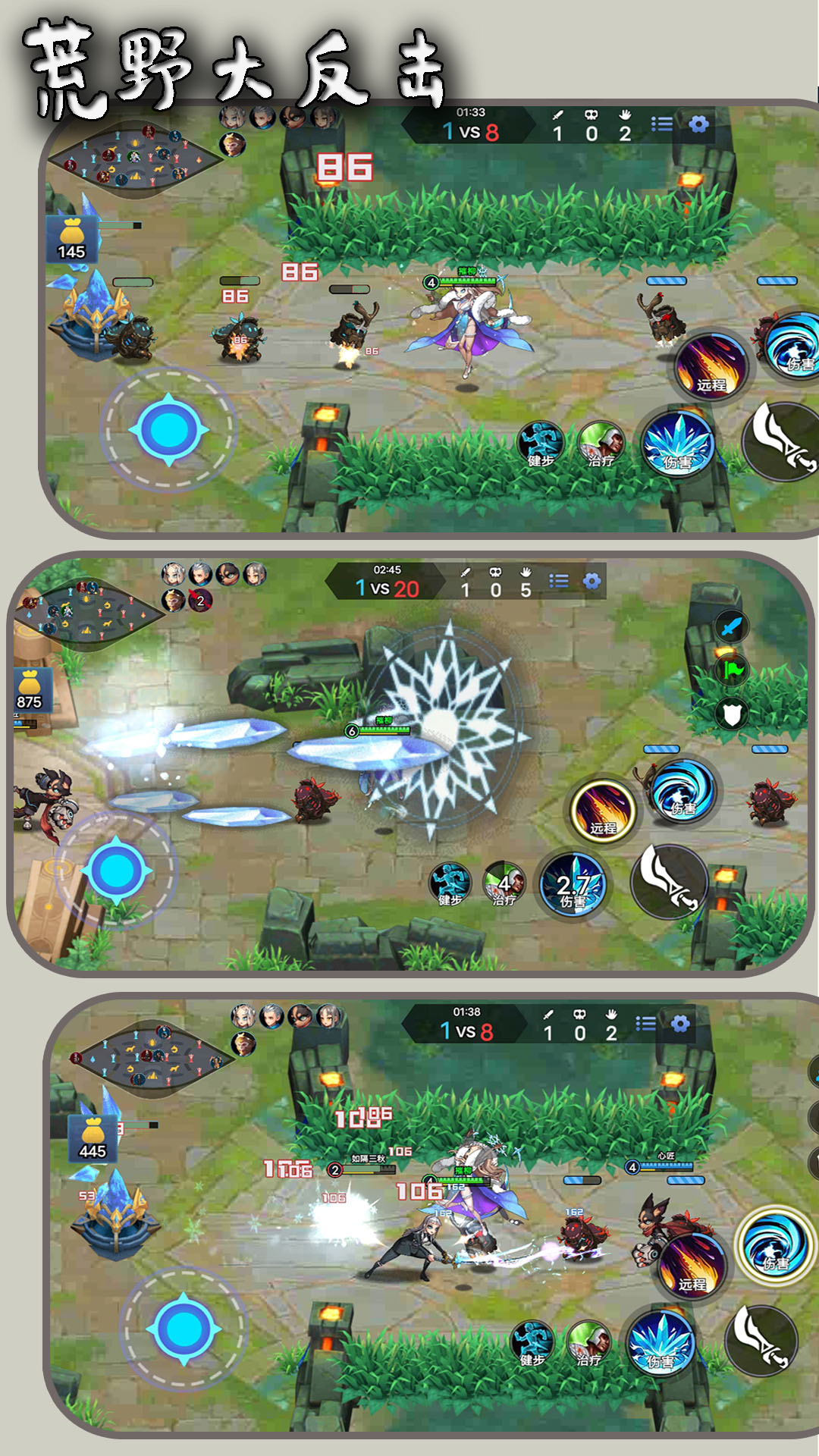 荒野大反击是一款有趣的moba对战5v5开黑的竞赛游戏,快速匹配,与好友开黑上分,多款英雄任凭选择每位英雄都拥有自己的特性及技能效果,让战斗层次更加丰富多变。游戏采用3D帧同步技术进行开发,拥有畅快的操作体验。如果你也喜欢这种类型的游戏,就一起来与好友开黑对战吧!