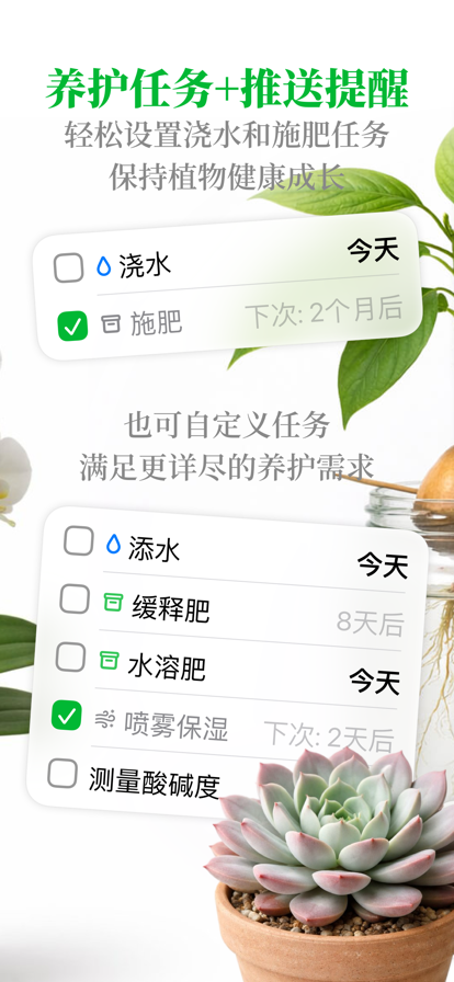 用植物宝照顾你的室内植物,让每一株都焕发生机。无论是忙碌的一周,还是多盆植物的日常,植物宝都能帮你保持规律、牢记养护任务、见证每一个成长瞬间。 【专为植物养护打造的任务清单】 浇水、施肥、换盆,一个真正懂植物节奏的清单帮你全部搞定。最忙的日子里也能轻松完成,生活再乱也能井井有条——花草不会因此受委屈! 【不只是提醒,更是一套养护体系】 设置重复任务,让日常养护自动运转。来不及时推迟一下也没关系,轻松追上进度,每一个关键步骤都不会错过。 【照片日记,记录每一个高光时刻】 把每次养护变成一段温暖的成长故事。用照片日记定格新叶抽芽、花朵绽放的珍贵瞬间,回头翻看时,进步看得见,成就感满满。 【植物收藏,一目了然】 按房间或分组整理你的植物大家庭,随时知道每株在哪里、该轮到谁了。再也不用猜那盆多肉放在哪儿,也不会漏掉正在等你的它。 【智能任务规划,养护不过度】 同时照顾好多盆植物?内置休息日功能让你更从容。告诉植物宝你的工作日,它只在你想专注的时候显示任务,帮你维持稳定的养护节奏,轻松又不焦虑。 【植物资料库】 快速搜索植物,获取基础养护指南。涵盖多种常见室内植物的入门建议,新手也能养得明白、护得自信。 【iCloud 同步,数据随身带】 iPhone 和 iPad 之间安全、私密地同步植物数据,换个设备也能无缝继续你的养护日常。 【专为 iPad 深度优化】 三栏式布局带来真正的 iPad 体验,任务与收藏一览无余。完美支持分屏和多窗口,想和其他应用一起用?完全没问题。 【隐私优先,数据只属于你】 植物宝支持离线运行,响应快速流畅。同步仅通过你自己的 iCloud 完成,无任何第三方服务器介入,用得放心。 从每一片新叶开始,和植物宝一起养出属于你的绿意生活。快来下载,让你的花园得到它该有的爱!