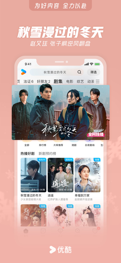 【精品内容,尽在优酷】 《秋雪漫过的冬天》赵又廷张子枫逆风翻盘 《暗恋者的救赎》罪与罚!绝望主妇深陷命案疑云 《非常检控观》炸裂开审!马德钟破解八大悬案 《风林火山》群星云集!暴力美学超爽港片 《剥茧》罗云熙变天才法医破诡案 《反人类暴行》品质好剧!《边水往事》导演新作 《逍遥》谭松韵侯明昊双世宿命奇缘 《山海经密码》以少年之志,破天命之局 《光阴之外》残酷末世少年屠神改命 《长安二十四计》成毅组团反杀到底 《天书黎明》探案小队寻宝藏破诡案 《百炼成神3》为爱逆天封神,挣脱宿命死劫 《凤凰台上》超级甜剧!任嘉伦彭小苒双强追爱 《神墓 年番》以我魔血染青天!少年踏破生死寻找身世之谜 《暗河传》热血江湖!龚俊执剑闯关破局 《新闻女王2》重磅回归!佘诗曼黄宗泽新闻职场风云再燃 《入青云》侯明昊×卢昱晓演绎宿敌变夫妻 《天相》废相少年度化灵煞逆转天命 《灼灼韶华》热依扎、杨祐宁携手逆袭闯商海 《师兄啊师兄》神仙年番看师兄!苟道成圣,稳到飞起 《凡人修仙传》爆款IP!杨洋热血修仙逆天改命 《哪吒之魔童闹海》哪吒涅槃重生高燃之战 《以法之名》年度狠剧!张译扫黑除恶掀司法黑幕 《云深不知梦》大女主复仇爽番来袭! 《藏海传》全员狠人!灭门案引连环杀局 国内外大剧热综、扎堆院线影片、二次元热血动漫……看视频,用优酷APP 用户许可协议(EULA):https://www.apple.com.cn/legal/internet-services/itunes/cn/terms.html 【连续包月黄金会员说明】 1.订阅周期:一个月 2.订阅价格: 每月25元 3.付款:用户确认购买并付款后记入iTunes账户 4.取消续订:如需取消续订,请在当前订阅到期24小时以前,手动在iTunes/Apple ID设置管理中关闭自动续订功能 5.续订:苹果iTunes账户会在到期前24小时内扣款,扣款成功后订阅周期顺延一个月 6.优酷隐私政策:https://terms.alicdn.com/legal-agreement/terms/suit_bu1_unification/suit_bu1_unification202005141916_91107.html 7.用户服务协议:https://terms.alicdn.com/legal-agreement/terms/suit_bu1_unification/suit_bu1_unification202005142208_14749.html 8.优酷VIP会员服务协议:https://terms.alicdn.com/legal-agreement/terms/suit_bu1_unification/suit_bu1_unification202111231337_81318.html?sharekey=ee7a7316710bcc9cea1bcd9291a233b76 【连续包年黄金会员说明】 1.订阅周期:一年 2.订阅价格:每年238元 3.付款:用户确认购买并付款后记入iTunes账户 4.取消续订:如需取消续订,请在当前订阅到期24小时以前,手动在iTunes/Apple ID设置管理中关闭自动续订功能 5.续订:苹果iTunes账户会在到期前24小时内扣款,扣款成功后订阅周期顺延一年 6.优酷隐私政策:https://terms.alicdn.com/legal-agreement/terms/suit_bu1_unification/suit_bu1_unification202005141916_91107.html 7.用户服务协议:https://terms.alicdn.com/legal-agreement/terms/suit_bu1_unification/suit_bu1_unification202005142208_14749.html 8.优酷VIP会员服务协议:https://terms.alicdn.com/legal-agreement/terms/suit_bu1_unification/suit_bu1_unification202111231337_81318.html?sharekey=ee7a7316710bcc9cea1bcd9291a233b76 【简介】 兼容Phone和Pad设备。优酷中国知名视频网站,优酷App为7亿用户提供电视剧,电影,动漫,音乐,新闻,娱乐,游戏,原创搞笑等海量影视,高清流畅播放,极速离线缓存,支持微博、微信、朋友圈一键分享。强大搜索功能,优酷在手,应有尽有! 【产品特性】 1.聚焦全网精品内容,提供电影、电视剧、综艺、动漫、娱乐等海量高清视频在线观看 2.支持视频批量缓存至本地,离线随时看 3.支持优酷账号及第三方登录,视频云记录,多屏同步看 4.支持用户上传视频、订阅自频道主、一键收藏追剧 5.支持AirPlay,用Apple TV轻松看优酷 6.提供VIP会员服务,畅享免广告特权和1080P高清影视,大片抢先看 7.完美适配iOS 15 【温馨提示】 期许与鞭策,只为更好的起航!当您使用中如有任何疑问或想吐吐槽,都热忱欢迎您致电我们:400-810-0580(或通过“APP-我的-我的客服”专属通道留言),优酷君一如既往在等你!同时,优酷君也期待您脑洞大开的创意与想法,为我们建言献策,凡经采纳即赠优酷定制精美礼品1份哦!
