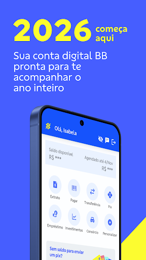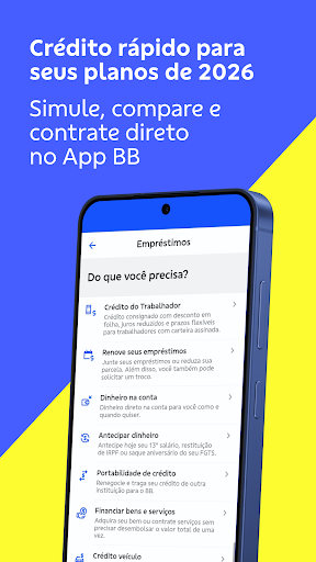 <b>2026年伊始,BB App伴您左右</b><br><br>您的BB数字账户已准备就绪,将陪伴您度过新的一年。只需几分钟即可免费开通您的数字账户,享受即时拍照、快速支付、银行卡、现金返还、投资等服务,以及规划未来所需的一切。<br><br>💛 💙 <b>BB App 功能:</b><br><br>• 几分钟内即可免费开通您的数字账户<br><br>• 查看余额和账单<br><br>• 使用即时 Pix 服务<br><br>• 支付账单、税款并管理债务<br><br>• 追踪卡片、限额和发票<br><br>• 使用虚拟卡进行网上购物<br><br>• 申请贷款和融资<br><br>• 投资基金、CDB、LCI、LCA、财政部直销、股票等<br><br>• 在 BB 小猪存钱罐中设定目标<br><br>• 参与联盟<br><br>• 购买保险和退休计划<br><br>• 通过周年提款选项提前支取您的 FGTS(巴西离职补偿基金)<br><br><b>规划和组织,助您迈向成功</b><br><br>使用 BB App 中的智能工具实时追踪支出、目标和预算。掌控你的2026年,按照你的方式规划<br><br>🌟 <b>BB 储蓄罐</b> 设定目标、设定价值观,并通过简单的储蓄体验追踪你的进度。<br><br>🤑 <b>我的财务</b> 智能管理你的资金。轻松查看支出、监控账单并管理你的投资。<br><br>💳 <b>BB 卡</b> 订购你的信用卡或借记卡,自定义限额,查看账单,并使用虚拟卡进行更安全的在线购物。进行非接触式支付,享受一体化管理,并拥有一张全球通用的国际卡。<br><br>💲 <b>投资和金融服务</b> 投资股票、CDB、国库券,并通过专业建议实现多元化投资。直接在应用内签订投资协议、购买保险、制定退休计划、进行融资,并预测未来市场趋势。<br><br>🎁 购买BB礼品卡、优惠券、手机充值卡,畅享游戏专区,更有海量福利和返现直接存入您的账户。<br><br>立即下载BB App,开启精彩纷呈的优惠和福利之旅。一站式管理您的银行卡、BB储蓄罐、Pix卡、投资账户等等。<br><br>😊 需要帮助?请发送WhatsApp消息至:61 4004 0001。<br><br>更多信息请访问网站:https://www.bb.com.br/atendimento<br><br>客服电话:4004-0001(首都及周边地区)0800-729-0001(其他城市)<br><br>费用、条款及其他服务条件可能有所不同。请务必检查巴西银行网站上的更新信息:https://www.bb.com.br/site/<br>Banco do Brasil S/A - CNPJ 00.000.000/0001-91 SAUN QD 5 LT B, Asa Norte, Brasília-DF, Brazil - CEP 70040-911<br><br>_<br>Banco do Brasil 应用程序与 Android 版本 8.1 或更高版本兼容。