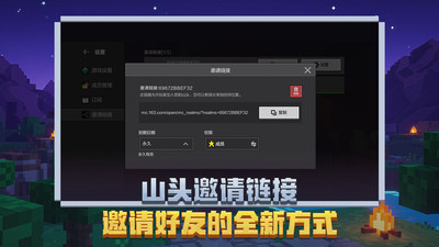 【“我的山头”租赁服加模组功能正式上线,自由打造专属世界】 “我的山头”租赁服加模组功能正式上线!即刻体验便捷模组管理,轻松安装配置各类精彩内容;独有邀请机制确保联机安全私密,智能存档备份守护游戏进度,灵活权限设置助力高效管理。加入“我的山头”,尽情打造你心目中的完美方块世界! 【掘金大师限时开启,挖矿赢实物豪礼】 冒险家们请注意!"掘金大师"活动火热来袭——在游戏内挖掘指定矿类,即有机会获得999纯金实物金矿镐、"我的山头"月卡等惊喜奖励!每日挖矿满指定数量,更能额外领取绑钻、绿宝石、紫水晶等珍稀游戏道具,以及JEI物品管理器、壹号大坝-绝密行动自定义模组!镐不停歇,奖不止步,立即加入掘金行列,解锁属于你的宝藏盛宴!