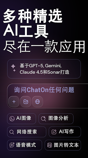 这是基于先进和创新的 GPT-5,Gemini 2.5 Pro,GPT-4o,o4-mini,Sonar,Claude 3.7 和 DeepSeek-R1 技术构建的 ChatOn。这款AI聊天机器人能够达到一个全新水平的仿人类互动:当你为某一场正式会议准备演讲,苦思动人的措辞,或寻求写作方面的帮助时,这款智能机器人和AI助手都会统统帮你搞定。<br><br>ChatOn正式构建于GPT-5,GPT-4o和GPT-4之上,为用户提供市场上最优秀的中文AI聊天机器人。<br><br>图片转换器:<br>只需上传图片,选择一种风格——日本卡通、AI动作人偶制作器、毛绒玩偶或赛博朋克——即可见证奇迹。<br><br>个人AI写作工具:<br>有了这款智能聊天机器人,你在进行包括从邮件和演讲到社媒帖子和诗歌在内的任何写作项目时,都可以获得个性化协助。此外,机器人还可以为你提供后续问题的建议,帮助你让聊天继续下去,更加深入地探讨任何话题。<br><br>网络分析:<br>根据你的问题,为你在线查找最新的信息。从天气预报到最新的时尚潮流,ChatOn都能帮你搞定。<br><br>文档大师:<br>ChatOn可以为你总结、改写,甚至翻译任何文档。如果你对文件的内容有任何疑问,机器人都会为你解答。<br><br>YOUTUBE专家:<br>只需粘贴视频的网址,机器人就会总结、改写、翻译视频,或回答你关于视频内容的所有问题。<br><br>文本转图像功能:<br>ChatOn可以帮助你将你的想法转化成任意尺寸和风格的图像。<br><br>语法和拼写检查功能:<br>这个基于GPT-5,GPT-4o和GPT-4构建的ChatOn应用程序的中文版,能够分析你的文字作品,并提供建议,来帮助你改善作品。<br><br>专业的改写功能:<br>我们的 AI 聊天机器人基于 GPT-5,GPT-4o 和 GPT-4 构建,能够为你改写文本,使其更具吸引力和专业性。<br><br>社交媒体帖子创作功能:<br>这款人工智能助手将帮助你为Facebook、Twitter、Instagram或LinkedIn个人资料创作引人注意的帖子。<br><br>图像到文本转换器(OCR):<br>ChatOn会帮助你识别图像中的文本,让你可以在聊天中迅速插入文本。<br><br>文本总结功能:<br>该聊天机器人的先进算法基于 GPT-5,GPT-4o 和 GPT-4,可以通过简洁易懂的格式,识别和呈现重要信息。<br><br>文字转语音选项:<br>虽然你可以随时阅读机器人发送的信息,但ChatOn也可以为你朗读它们,让你轻松听取。<br><br>语音转文本功能:<br>用说话代替打字!<br><br>真实性润色工具:<br>无论你是在雕琢一篇社媒帖子还是商业提案,这款AI聊天机器人都可以帮助你,让你的文字充满真情实感、个性魅力,以及才华。<br><br>可靠的聊天伴侣:<br>这个AI伴侣可以为你提供与人类相似的回应,让你感觉就像在和一个老朋友聊天一样。<br><br>文本结构优化功能:<br>这款聊天机器人还具备专业的技术,可以为你整理文本,使内容更加清晰。<br><br>数学大师:<br>ChatOn以强大的、支持中文的GPT-5,GPT-4o和GPT-4人工智能技术为基础进行构建,致力于帮助你完全领会这门学科,而不仅仅是获得即时的解题答案。<br><br>专业程序员:<br>你可以使用我们的聊天机器人来编写和验证程序代码,确保代码中不存在任何可能的漏洞或错误。<br><br>说明工具:<br>该机器人基于颠覆性的 GPT-5,Gemini 2.5 Pro,GPT-4o 和 GPT-4 技术构建,能够将复杂的理念拆解成简单的模块,以便你更有效地学习和记忆信息。与AI机器人进行对话,获取对法律文件与术语的简单、准确的解释说明。<br><br>简历和求职信制作功能:<br>打造令人印象深刻的简历和正规求职信,以最好的方式展示你的技能和经验。<br><br>智能的演讲稿撰写工具:<br>使用基于 GPT-5,GPT-4o 和 GPT-4 构建的 ChatOn,给你的观众留下深刻的印象。在以突破性GPT-5,GPT-4o和GPT-4技术为基础研发的、颠覆行业的聊天机器人的帮助下,传递极具感染力的、令人难忘的信息!<br><br>电子邮件生成器:<br>这个中文聊天机器人基于 GPT-5,GPT-4o 和 GPT-4 构建,可以在几秒钟内撰写出专业级别的、极具说服力的信息。<br><br>头脑风暴工具:<br>这款基于 GPT-5,GPT-4o 和 GPT-4 技术构建的 AI 写作机器人,能够为各种类型的大小项目生成创意、提供对话支持,以及激发创造力。<br><br>您可以立即开始AI聊天——这款基于GPT-5,GPT-4o和GPT-4构建的应用程序具有简单的操作界面,可以让你立刻与AI对话。只需输入你的请求,或从100多个预设的提示中选择,机器人就会替你完成枯燥繁琐的写作程序。<br><br>让我们一起开启智能AI的世界!下载基于GPT-5,GPT-4o和GPT-4构建的ChatOn应用程序中文版,让虚拟助手时刻陪伴在你身边!