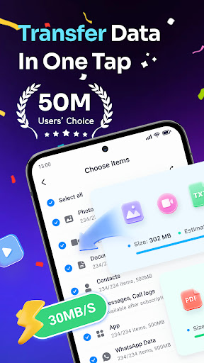 MobileTrans 可以将照片、视频、联系人、音乐、文件、录音、文档、WhatsApp 聊天记录、短信、应用程序和日历等内容从旧手机传输到新手机,并且支持跨平台传输,不受品牌限制:从 iPhone 到 Android,从 Android 到 iOS。<br><br>计划换用新款 iPhone 17?试试 MobileTrans——几秒钟内零损失传输您的数据!<br><br><b>手机数据传输</b>:以平均高达 30 MB/s 的速度将您的<b>所有</b>数据传输到新手机。<br><b>0 数据消耗</b>:传输过程中不消耗任何移动数据。<br><b>WhatsApp 传输</b>:轻松将您的 WhatsApp 数据(包括您的聊天记录、联系人甚至贴纸)移动到新手机。<br><br>也许您想问,为什么要使用 MobileTrans 来“复制我的数据”,它是 iOS 和 Android 之间排名第一的数据传输解决方案。<br><br>原因如下:<br>⚡️闪电般的数据传输,免去等待的焦虑<br>数据传输应用 - MobileTrans 比蓝牙快 200 倍,即使是大文件也能快速传输。平均速度高达 30MB/秒,只需 30 秒即可传输 1GB 的视频。<br><br>💥传输过程中不消耗任何流量<br>MobileTrans 使用本地热点进行数据传输,这意味着传输过程中不会消耗您的流量套餐。<br><br>✔️支持所有类型的数据传输<br>MobileTrans 内容传输应用 - 支持将各种类型的数据传输到您的新手机,包括图片、视频、音频、联系人、短信、音乐、文档(Word、PowerPoint、Excel、电子书等)、WhatsApp 聊天记录、WhatsApp Business 数据以及日历活动。<br><br>⭐️基于二维码的连接<br>照片传输解决方案 - MobileTrans 提供基于二维码的传输,让您通过扫描二维码即可连接两台设备。它支持 iOS 和 Android 以及各种手机品牌之间的数据传输,例如从三星手机传输到 iOS 或从 iPhone 传输到华为。<br><br>🔒 高隐私性和数据安全性<br>MobileTrans 和 Wondershare 都非常重视用户隐私保护。MobileTrans 仅充当数据传输的桥梁,其唯一使命是确保所有数据成功迁移到新设备。<br><br>🚀MobileTrans 的优点:<br>💫MobileTrans-Data Transfer 完全支持跨平台数据传输:从 iOS 到 Android、从 Android 迁移到 iOS、iOS 到 iOS,或在 Android 设备之间传输,还支持将 iCloud 数据同步到 Android。<br>✨只需扫描二维码,即可在新旧手机之间建立快速安全的连接。<br>🔥数据传输不受品牌限制。您可以在不同品牌之间传输数据,例如 Apple、三星、华为、OPPO、Wiko、MI、Pixel 等等。<br><br>Wondershare MobileTrans 功能:<br>📷照片传输:使用专业的照片传输应用 MobileTrans,即使更换手机,也能保留对您来说最重要的照片、视频和音频文件。<br><br>📂文件传输:Wondershare MobileTrans 简化文件传输,只需单击即可完成。它支持所有文件格式的传输,包括 Word、Excel、PowerPoint、PDF、ePub 等。<br><br>🗨️备份和恢复短信及通话记录:MobileTrans 可帮助您轻松备份所有短信和通话记录。之后,您可以轻松恢复它们。<br><br>📲联系人和应用传输:MobileTrans——联系人传输专家——让您只需单击即可轻松传输联系人,节省时间并保护数据完整性。它还可以将您珍爱的应用程序从无法下载的来源迁移到您的新设备。<br><br>✅WhatsApp 和 WhatsApp Business 数据转移:MobileTrans 可在 iPhone 和 Android 设备之间安全地传输 WhatsApp 数据,快速传输消息、贴纸、图片、视频、文件和附件。附注:传输 WhatsApp 数据时,您需要一根 OTG 数据线连接两部手机。<br><br>联系方式:customer_service@wondershare.com