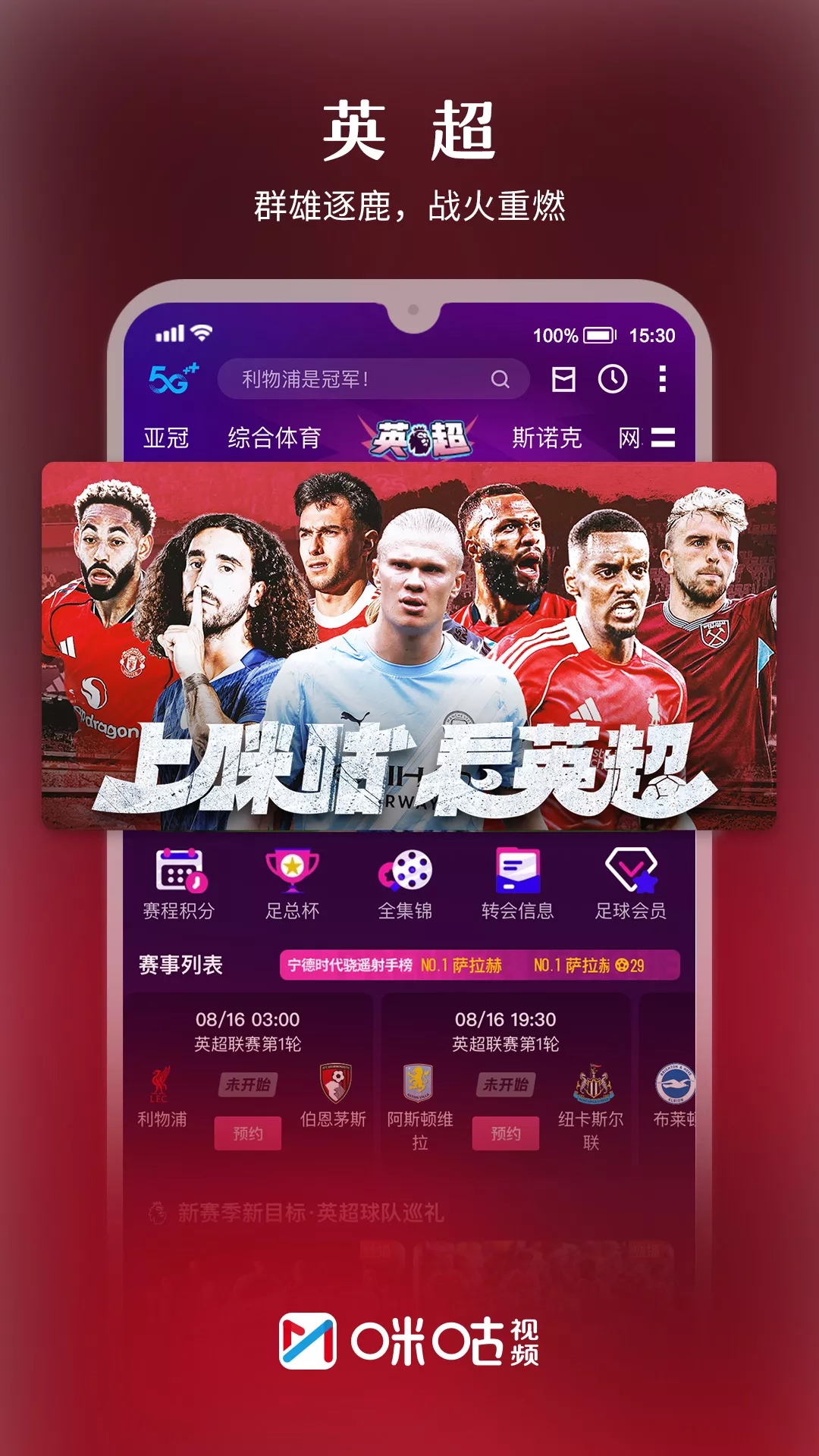 各大赛事精彩不停歇,看各路豪强实力对决!大咖解说、4K超高清,海量热门赛事直播锁定咪咕视频! 电视剧《我们的河山》看共创抗日救国农救会书写保家卫国的热血长歌;《暗潮缉凶》看潮起凶落,连海平火眼金睛、明察秋毫。电影《哪吒之魔童闹海》看魔童哪吒逆天改命,踏浪弑神;《酱园弄·悬案》看突破尺度还原民国奇案,刀锋之下暗藏时代密码。综艺《歌手2025》看十年淬炼,用音乐丈量时光;《天赐的声音6》看音浪狂潮天籁对决。上咪咕视频,给你好看! 热门赛事热血出击:中超、英超、西甲、德甲、意甲、法甲、男篮亚洲杯、NBA、CBA、WTT、UFC 人气热剧追不停:《我们的河山》《暗潮缉凶》 热播影片尽享:《哪吒之魔童闹海》《酱园弄·悬案》 热播综艺宅家看:《歌手2025》《天赐的声音6》 【特色剧场 海量资源任你挑选】 好莱坞大片、高分经典TVB热剧、限免抗日大剧、二次元热血动漫持续更新中,等你来嗨! 【人气动画 少儿动漫乐翻天】 《小猪佩奇第十一季》、《哆啦A梦第五季》、《宝可梦地平线第一季》、《秘密内幕:女警的反击》等与你乐享卡通时光! 【千路卫视高清直播 零时差畅看】 电视直播、央视专区、卫视及地方台、特