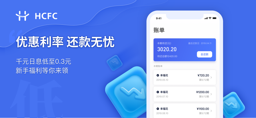 【产品介绍】 幸福花APP是由幸福消费金融推出的一款个人信用消费贷款APP,为广大用户提供无抵押、无担保、线上审批、循环使用、额度高达20万元的专业消费金融服务。 【产品特点】 1.简:信用申请,无抵押无担保; 2.快:线上审批,快速放款; 3.便:随借随还,按日计息; 4.高:额度高达20万,还款可分12期; 5.安:合规经营,安全可靠。 【公司介绍】 河北幸福消费金融股份有限公司(简称“幸福消费金融”)成立于2017年6月,是经中国银保监会获准建立的全国性消费金融公司之一,由张家口银行、神州优车、蓝鲸集团共同发起设立,也是目前河北省唯一一家消费金融公司。幸福消费金融为满足各阶层消费者的消费贷款需求,推出多场景的个人消费贷款、消费分期、场景支付等消费信贷产品,为用户提供全面的普惠金融服务。