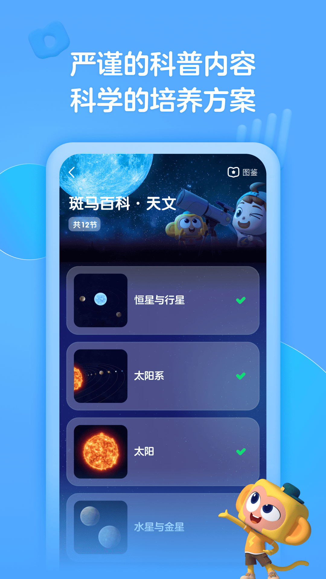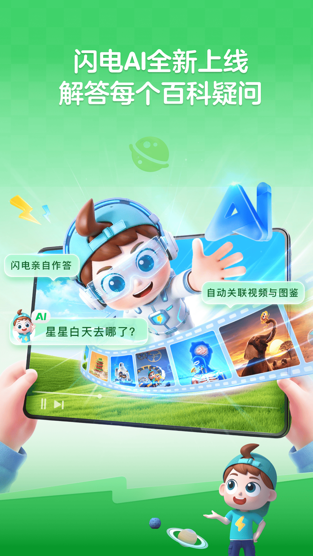 十万个为什么-语音版上线啦!适合3-10岁儿童。 App特点: 【丰富内容】场景众多,不断更新。包括科学知识、动物世界、太空冒险、习惯培养、安全知识等多个分类 【形式多样】App通过精美的卡片展现,动听悦耳的播读+字幕展示,辅以生动精彩的动画,让孩子们了解世界、掌握知识。家长们也可以从中学到很多知识; 【父母省心】家长都烦恼儿童使用手机过多会影响视力。本APP通过声音播读+字幕展示,可以边听边完成其它事情啦! 十万个为什么,探索太空奥秘; 十万个为什么,你喜欢动物吗; 十万个为什么,带你畅游海底世界; 十万个为什么,你知道哪些地球知识呢; 十万个为什么,大自然藏着许多奥秘哟; 十万个为什么,穿越侏罗纪,和恐龙做朋友。