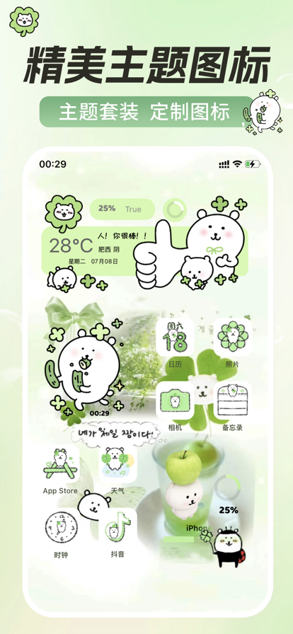 * 手机美化,iScreen 一下!* iScreen拥有众多原创设计师,持续更新有趣、鬼马、实用的创意! ▶ App Store 编辑推荐 ◀ ▶ App Store 今日App ◀ ▶ App Store 必备生产力工具 ◀ ▶ 荣获 Next World 年度风采奖 ◀ *全新适配iOS26,支持液态玻璃小组件、空间景深壁纸等新功能,百变个性化组合搭配,让你的手机更有趣、更实用! 特色功能: 【iOS26】 专为iOS26开发的海量空间壁纸模板(全网挑战的跳崖壁纸、裸眼3D照片DIY、二次元、未来科技空间)、实时天气液态玻璃组件、液态玻璃主题套装,解锁你桌面的隐藏颜值! 【控制中心】 在控制中心敲木鱼、喝水记录、摇骰子、追星嗑CP,更多图标样式已上新~ 【灵动岛】 *可爱动画、IP联名动画,专属语录设置; *宠物上岛,随时互动;植物上岛,享受种田乐趣 *天气岛、启动岛——实用设置,省时又高效 ... 【DIY壁纸制作】 海量模板,静态/动态壁纸DIY(对镜头签名、息屏追光、人生四格、空间景深壁纸等),紧跟热点,新奇的玩法都在这里! 【桌面/锁屏小组件】 下班倒计时、咸鱼翻身、好运药丸、空调、语音照片;颜文字、小动画、签名,有趣的创意它全都有! 【密友小组件】 和好友在手机桌面直接互动(互送礼物,查看彼此的实时距离等),好东西一定要@你的好闺闺一起玩! 【主题壁纸】 原创设计师帮你打造高颜值手机桌面,小众又高级;IP联名——喜欢的角色以更有趣的方式在手机桌面上出现是什么体验! 【待机组件&充电动画】 充电横屏新玩法+充电动画、提示音,带来不一样的个性充电秀。 注意: iScreen 集成苹果健康App,用在小组件显示健康数据。 如果您要使用健康-步数/睡眠小组件,请在添加时允许APP获取健康相关数据 使用条款:https://www.xmzerone.com/about/deskagreement.html 隐私政策:http://www.xmzerone.com/about/deskprivacy.html