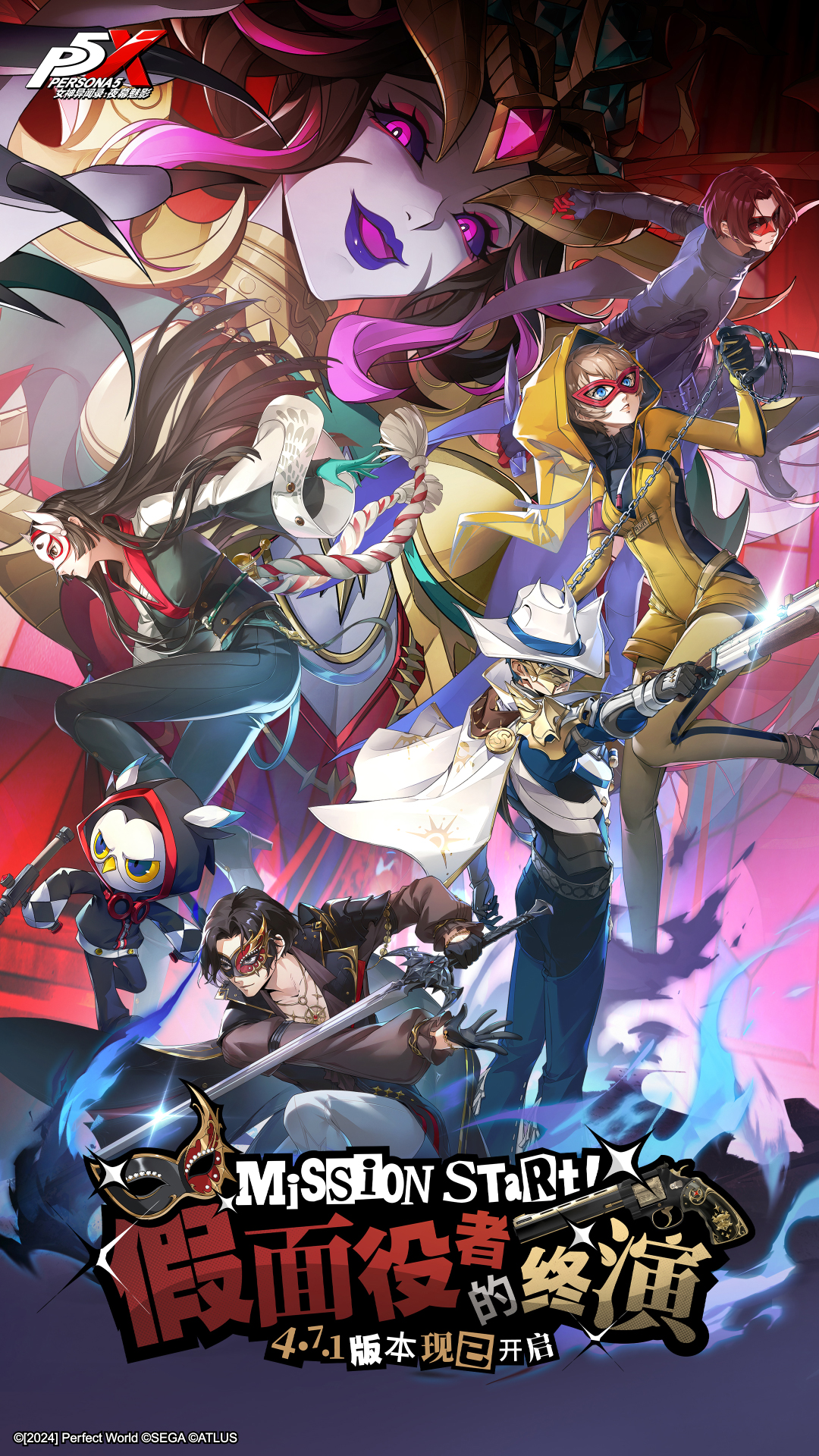 "4.7.1版本「假面役者的终演」11月27日开启上篇!生存或毁灭,五星限定祝福属性支配怪盗角色「池波星辉·永夜」登场!池波星辉·永夜认知模拟试用角色同步更新。同时,池波星辉协同者故事上线!12月11日开启下篇,荒野守望者,五星限定射击属性防护怪盗角色「加纳俊·拓荒」登场!<br><br>《女神异闻录:夜幕魅影》(简称:P5X)是获得了SEGA正版IP授权,由ATLUS全面监修深度参与,完美世界游戏打造的异世界都市冒险JRPG。白天感受潮酷都市生活与青春恋爱日常,放学后化身华丽怪盗潜入宫殿夺宝,体验双面人生!"
