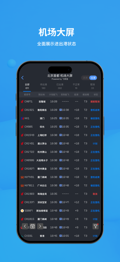 请放松心情,高枕无忧吧!因为从现在开始,我们将尽一切努力让您的航班更舒适,而且全天候 24 小时轻松无压。 - 按航线、航班号、机场或航空公司搜索航班; 了解详细信息,例如预计到达时间、实际出发时间、航站楼和登机口号、路线、距离、持续时间和剩余飞行时间。 本应用支持超过 850 家航空公司。 - 通过实时提醒,随时了解您的航班状态变化; 通过推送通知,接收自动实时更新。 - 在 Apple Watch 上跟踪航班; 接收航班更新并查看登机口、航站楼、出发和到达信息。 - 通过“灵动岛”和“实时活动”查看航班重要详情; 无需经常打开应用即可保持最新状态。 - 有了“我的旅程”逐步指南,绝不会错过任何事情; 通过简单的 48 小时倒计时,可了解从航班跟踪到飞机着陆的每一个旅行步骤。 - 获取详细的机场信息; 包括航站楼地图、当地时间、实际天气。 - 将航班信息板放在口袋中; 轻松访问到达和离开信息。 - 通过实时飞机雷达,观看飞机在全球的移动情况; 您可以点按飞机,了解详细的航班信息,并使用有用的筛选器来自定义地图,例如选择三种地图样式之一,或隐藏机场位置,或隐藏飞机。 - 上传旅行证件并将所有内容保存在一个地方; 快速访问您的登机牌、疫苗接种证明、预订确认信息等,并直接在本应用中添加相关备注。 - 查看您的以往航班的历史数据; 通过电子邮件、短信、Facebook、Twitter 和 WhatsApp 与他人分享您的航班信息。 - 通过自动日历和 TripIt 同步,管理您的旅行计划从未如此简单! 升级至高级版,畅享无广告体验和高级客户支持。 条款及条件:https://impalastudios.com/terms 隐私政策:https://impalastudios.com/privacy 感谢您选择 航旅追踪 应用,祝您旅途愉快。 如有任何问题或反馈,请通过 support@impalastudios.com 联系我们。 我们永远希望与您一起进步!