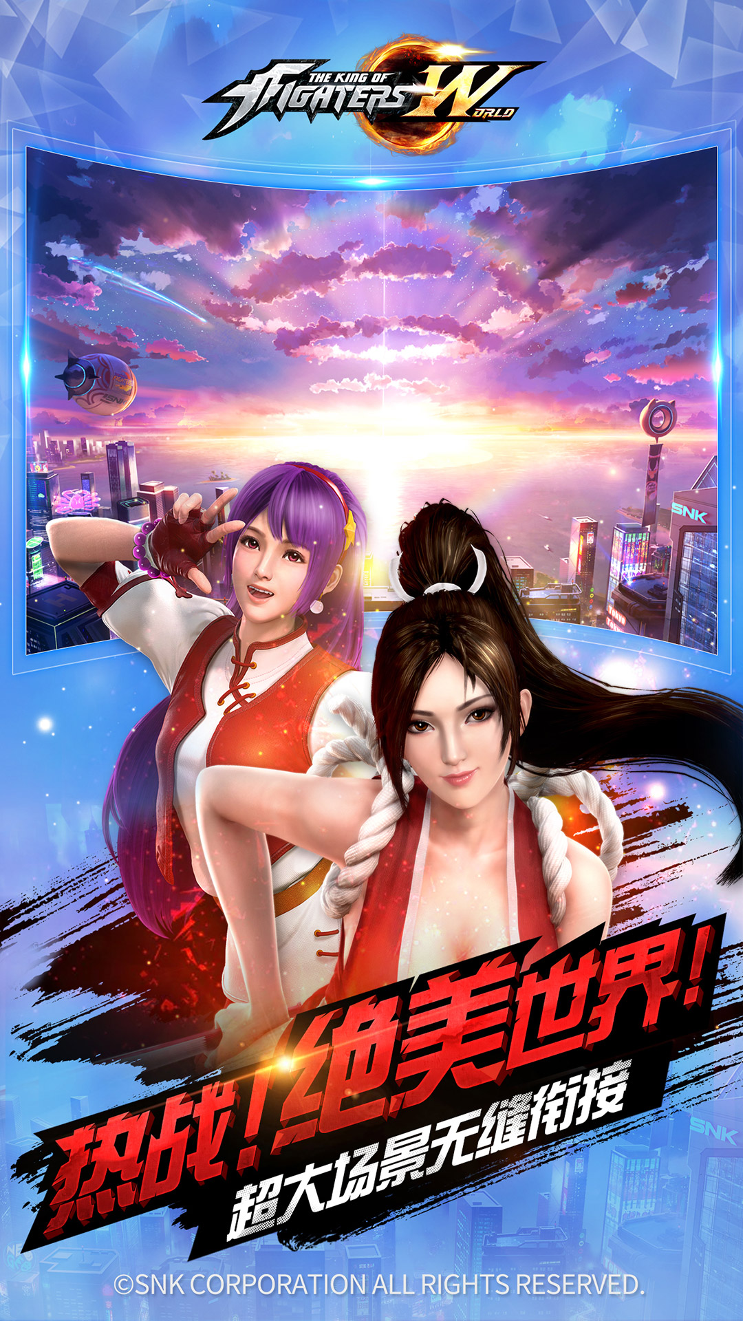 大型3D-MMORPG手游《拳皇世界》,是SNK公司旗下KOF系列首度RPG化的作品。游戏采用全3D引擎制作,还将有KOF史上最全的格斗家演出以及KOF系列经典剧情补完。游戏将玩法重心由“华丽格斗”转向“3D全景自由都市”,为玩家营造一个属于KOF的大世界。世界观设定为近未来,会加入“自由都市模拟”元素,让玩家在高自由度的KOF世界中展开冒险生活。全新版本“三神器”袭来,格斗家的战力全面升级,更爽快的战斗体验、更刺激的PVP战斗玩法、更拉风的炫酷机车。战火一触即发! ——神器崛起,三神器、上古血脉全新玩法袭来—— 此次版本全新上线神器系统,将打破原有格局,全新战斗玩法等你体验。 ——禁地寻宝,不入虎穴焉得虎子你的敌人可能就在身边—— 全新玩法禁地寻宝将开启全服比拼,获得任务道具兑换最终极的奖励吧,你的竞争对手可能就在身边。 ——全新机车磁悬浮哈雷,拳皇世界正式开启磁悬浮时代—— 炫酷的磁悬浮哈雷是每一位强者的证明,拉风的磁悬浮技术将整个拳皇世界再次提速。 【游戏特色】 ——历代角色首次集结—— 召集史上最全格斗家呈现拳皇系列经典剧情,与草薙京、八神庵、不知火舞一起揭开拳皇历代剧情谜团; ——机车狂飙酒吧约会—— 原创载具系统,改装机车一键加速体验速度激情,加入社团酒吧对饮体验丰富社交玩法; ——平衡属性还原操作—— 融入公平竞技玩法“拳皇大赛”每日开启,还原拳皇格斗操作体验; ——超大场景无缝衔接—— 采用全3D引擎打造全景自由都市风貌,还原都市景观,展现绝美世界; ——原版阵容全程配音—— 拳皇原版配音团队,史上最豪华CV阵容演绎经典格斗家形象,更有日本一线声优倾情献声; ——生活技能模拟现实—— “匠人生涯”玩转丰富生活技能,料理、花道、调酒、缉捕、驾驶、演艺、打工等玩法带给你现实般沉浸式体验; ——时装染色DIY秀场—— 首发夏日沙滩、绯红雪、冬日之拥、月光男爵等主题时装,更有DIY染色功能让你在人群中脱颖而出; ——真实经济自由贸易—— 世界拍卖、社团拍卖丰富道具材料应有尽有,公平竞价模拟真实经济生态; ——丰富玩法组队格斗—— 多样化日常及限时活动开启,与好友组队加入战斗,挑战大蛇、伊格尼茨、斋祀等经典BOSS;