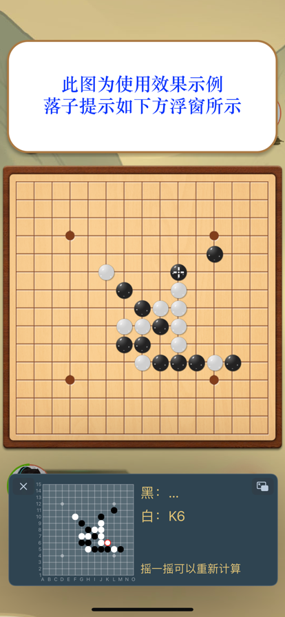 本应用可以在您玩五子棋游戏时,通过实时分析棋盘局面,为您如何落子提供参考,并将其显示在悬浮窗内,另外还有小棋盘和语音提示。它不仅可以增加游戏趣味性,也是您提升棋艺道路上的良师益友。 支持免费试用3天,试用期结束后订阅会员即可继续使用。 使用条款:https://www.apple.com/legal/internet-services/itunes/dev/stdeula/ 隐私政策:https://www.freeprivacypolicy.com/live/e7aaa8ca-f7e8-4e84-ac81-a74001916c4a
