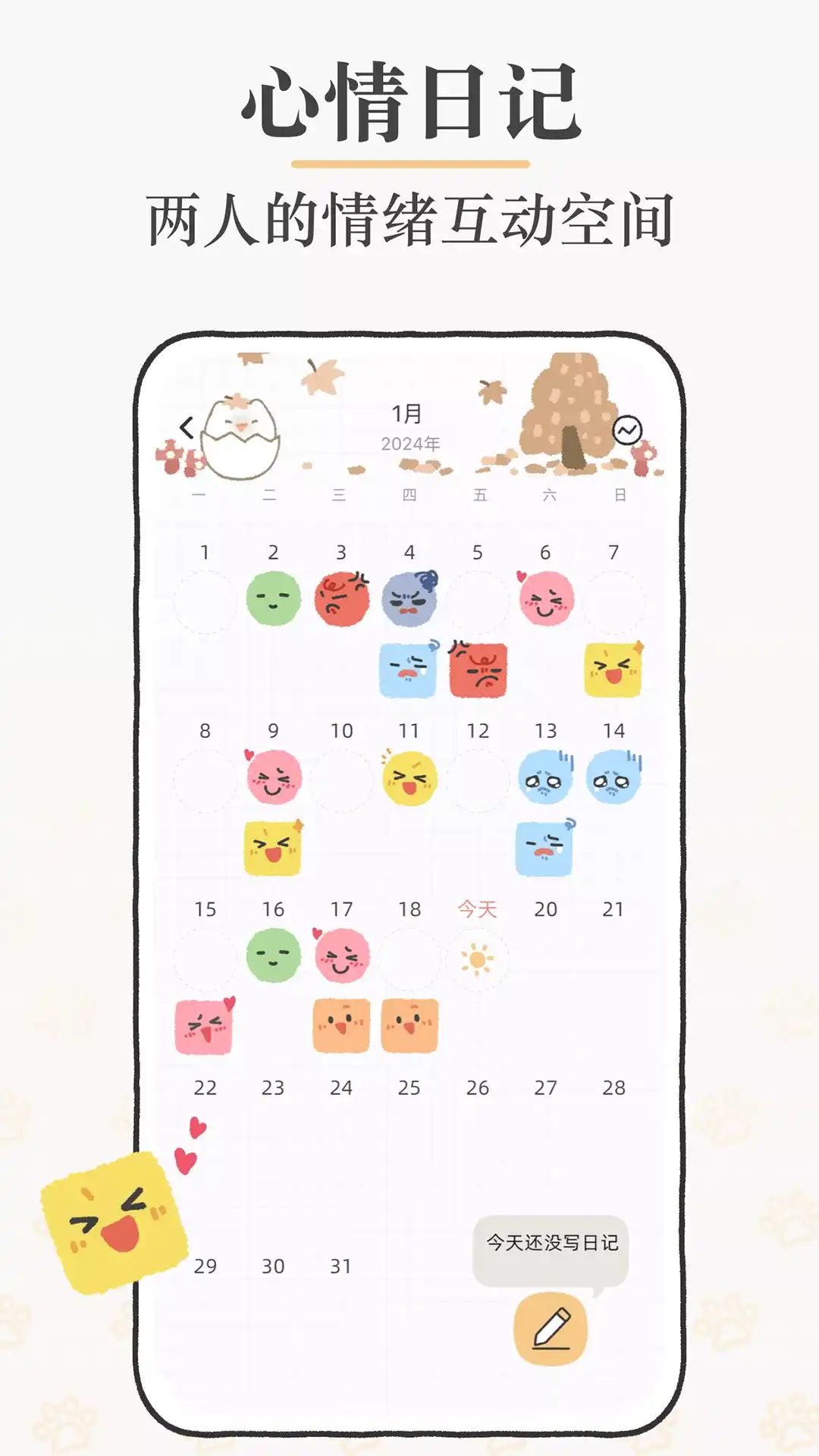 爱情,是生活中最美妙的旅程,让我们为你们的爱情之旅增添一抹浪漫的色彩! 不论你们是初相遇的恋人,还是已经携手多年的情侣,我们都致力于让你们的爱情更加美好、更加难忘。让我们一同记录每一个甜蜜瞬间,分享每一段动人故事,感受爱情的温暖,让我们的应用成为你们爱情路上的忠实伴侣~ ————主要功能———— 【聊聊天】情侣专属聊天空间,在这里与Ta甜蜜畅聊 聊聊天是一个专为情侣设计的私密聊天空间,让情侣在一个安全、亲密的环境中畅所欲言。在聊聊天中,你们可以分享彼此的心情、生活琐事、计划和梦想,也可以发送表达爱意的信息和照片。除此之外,聊聊天还提供了许多特殊功能,来增加你们之间的互动和乐趣。 在聊聊天中,你可以使用表情符号、贴纸和特殊的表达方式,使对话更加生动有趣。你们还可以共享音乐、视频和位置信息,让彼此更加贴近。聊聊天还提供了私密相册功能,让你们可以共享照片,但只有彼此可见。 聊聊天是一个特别为情侣定制的聊天空间,为你们创造了一个亲密、浪漫的交流环境,让你们享受甜蜜的对话和互动。 【情侣小家】情侣二次元虚拟小家,一起养一只可爱小宠物 在这里打造你们的专属二次元小家,和Ta一起陪伴可爱的小宠物! 情侣小家是一个充满温馨与趣味的二次元虚拟空间,让你们可以共同经营和装饰一个属于你们的小家。通过精心设计的界面和丰富的互动功能,你们可以共同选择家具、布置空间,甚至设计小花园,创造出一个独特而温馨的小天地。 在情侣小家中,你们还可以养一只可爱的小宠物,赋予它个性化的名字和特点,记录它成长的每一个瞬间。通过参与日常的宠物活动、游戏和任务,你们可以增进彼此的互动,让这份感情更加深厚。此外,小家中会定期举办各种主题活动和节日庆祝,让你们在这个虚拟世界中体验到真实的温暖与幸福。 【记我们】情侣日常动态私密分享空间,我的世界只有你 记录你们的爱情点滴,分享生活中的每一个瞬间。 记我们是你们专属的日常动态分享空间,让情侣们只需轻松记录和分享生活中的点滴瞬间。无论是一同出游的美好回忆,还是每一次的日常小惊喜,这里都是你们爱情故事的完美印记。 在记我们功能中,你们可以分享文字、图片和短视频,创建独特的爱情日记,保存每一个重要时刻。还有丰富的标签与表情支持,使每一次分享都充满个性和创意。只有你们两人可见,确保每一个甜蜜的瞬间都是单纯而私密的。 记我们的使命是帮助你们珍藏生活中的每个细节,为未来回忆起那些幸福的光阴增添更多的温暖。 【情侣圈】情侣社交圈,分享甜蜜恋爱日常 情侣圈是一个全新的社交空间,让你们在广阔的情侣社区中分享恋爱中的甜蜜瞬间。无论是激动人心的约会、旅行的美好回忆,还是日常生活的小趣事,你们都可以在这里发布内容,与其他情侣互动。情侣圈不仅让你们的爱意得以传播,更让你们能够看到其他情侣的幸福瞬间,从而收获灵感和共鸣。 在情侣圈中,你们还可以点赞、评论和分享,更可以参与到不同的主题活动中,结识志同道合的情侣,增加彼此的互动乐趣和情感纽带。通过这个平台,与其他情侣一起见证和分享爱情的点滴,让甜蜜的爱情更加多姿多彩。 【桌面秀图】一键传图占领Ta的桌面 桌面秀图是一个创新功能,让你能够轻松将心仪的照片设置为对方桌面的背景,随时提醒对方你的爱意和关心。只需通过手机小组件的简单操作,你就可以一键传图,快速占领Ta的桌面。无论是珍贵的合影、可爱的日常,还是迷人的风景,这些照片都将成为你们爱情的温暖见证。 通过桌面秀图,你们还可以轮流更换桌面图片,赋予彼此更多的惊喜和期待。每一次打开手机,看到熟悉的画面,都会让你们心中涌起满满的幸福感,增进彼此的亲近和互动。 【每日蜜语】甜蜜情话让你每日心动 每日蜜语是为你们量身定制的浪漫情话功能,每天都为你送上不同的甜蜜句子,让你在忙碌的日常中,感受到爱的温暖与关怀。无论是经典的爱情名句,还是创意十足的情侣专属语录,每日蜜语都会让你们的心动时刻不断刷新,增加生活的幸福感。 【相恋第X天】情侣相恋日期记录,珍惜我们的每一天 相恋第X天是专为情侣设计的恋爱日期记录工具,帮助你们纪念和庆祝相爱的每一个里程碑。从第一次见面到每一周年纪念日,甚至是每一个重要的相恋日子,这里是你们爱情旅程的时间轴。 通过相恋第X天,你们可以轻松查看相识和相恋的日子,分享随之而来的每一次感动与成长。每当你们的相恋纪念日到来时,系统会自动提醒你们,让爱情的浪漫时刻不会被遗忘。此外,还能附上小故事、照片或留言,让这个重要的日子充满回忆与祝福。 在这个专属的日历中,共同见证你们爱情的成长,记录下每一个独特而珍贵的瞬间,让心有灵犀的记忆永不褪色。 如果您在使用的过程中有任何问题以及建议,欢迎通过App内的【联系我们】入口向我们反馈。