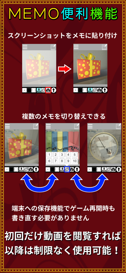 我们使用的是在这场比赛中的机器翻译。因此,似乎有一个不明确的点。没有妨碍游戏的进度不知道的情况。如果这句话是不知道,我们请您跳过。 难度系数较低逃脱游戏。 自动保存,答复显示,配备了备忘录功能。敬请期待不期待,因为他们,但我们曾经还附上由业余写的小场景。