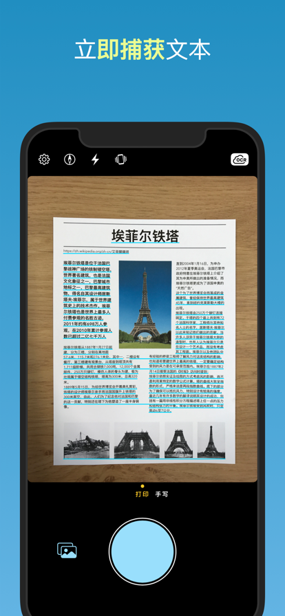 对准打印的文本。拍摄。然后就大功告成了!Prizmo Go让您可以快速抓取来自相机的文本。文本可以瞬间被识别,然后您就能以诸多实用的方式与其交互。或者直接将其发送到其他应用。如果您有Mac,您甚至可以将文本拷贝/粘贴到其中。再也不需要重新打字了。就是如此轻松,感觉就像魔术一般。 另外,Prizmo Go还可实现与捕获文本的丰富交互。拍摄后,来自原始图片的文本会显示出来,轻扫它即可直接从图像进行快速准确的文本选择。然后,所选文本可以被朗读出来,或者您可以轻点以浏览至任何打印的网站地址、拨打电话号码、从电子邮件地址触发“邮件”应用,甚至显示Apple“地图”中的实际地址并启动导航至该地点。 除了拍摄前的语音指导之外,Prizmo Go还设有专为VoiceOver设计的增强功能。借助该功能以及“文本到语音”功能,该应用可以在您需要帮助阅读打印的文稿时为您带来极大便利。 注意:Prizmo Go不支持您创建PDF文稿。如果您需要此功能,请参考Prizmo标准版。 照片捕获 - 基于相机的文本捕获,适用于iPhone和iPad - 相机预览中的实时文本高亮显示 - 闪光和设备方向检测 - 创新性图像稳定功能(清晰度跟踪) - 从相簿或iOS文稿选择器导入 文本识别 - 高级图像预处理(清理、透视校正、动态缩放) - 页面方向识别 (machine learning) - 处理扭曲的文本 - 强大的基于神经网络的内置OCR(可离线使用) + Apple OCR - 准确的云OCR(*)选项(需要连接互联网) - 手写文本识别(*) - QR码识别 文本交互 - 通过轻扫图片来选择文本 - 拷贝/粘贴到其他应用或Mac(*) - 与检测到的信息进行交互:电话号码、电子邮件地址、实际地址、网站(*) - 带文字高亮显示功能的音频(文本到语音)阅读器,包括背景音频播放和句子导航 - 翻译为多种语言 (*) 辅助功能 - 完全支持VoiceOver并改进了工作流程,适用于视障者和盲人用户 - “文本到语音”输出和语速控制 - 特定的图像处理,可处理未对齐文本和反转配置 - 实际拍摄前的语音指导 - 与Dynamic Type深度集成,实现了更加美观和可定制的文本外观 其他功能和自动化 - 优化适配最新版iOS - 利用通用剪贴板拷贝到Mac - 3D Touch快速操作和触觉反馈(iPhone 7或更高版本) - iPad多任务处理:支持Slide Over/Split View - 支持操作扩展和“打开方式”:其他应用可将图像发送至Prizmo Go进行处理 - 通过URL方案机制(x-callback-url)可从其他应用(捷径 app)触发Prizmo,并检索识别的文本。适用于相机输入或提供的输入图像(剪贴板)。 - 支持 Siri 快捷键 - iOS: 深色模式, Core ML, Apple OCR, 操作快捷键, SF Symbols, Voice Control (Accessibility) (*)需要购买,有关可用的选项,请参阅应用。 可在https://creaceed.com/prizmogo上获得OCR语言的完整列表 批量购买 (VPP):请参阅Prizmo Go (Volume Ed.) Terms of Use: https://creaceed.com/terms Privacy Policy: https://creaceed.com/privacy Feedback: prizmo@creaceed.com
