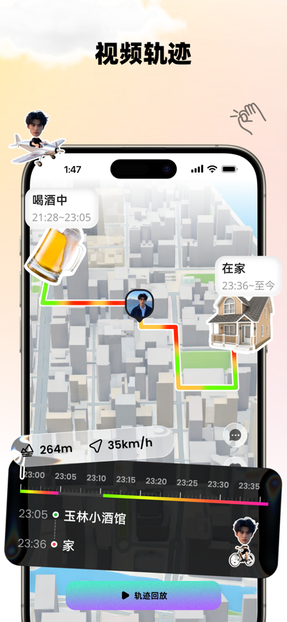 Jagat 是一款专为亲密关系设计的社交应用,旨在帮助用户与亲密关系的朋友和家人保持联系,并在需要时提供安全保障。该应用通过实时位置共享和多种互动方式,增强了亲密关系之间的交流与守护。 #请不要担心 你可以在地图上实时查看 恋人、好友、家人 【现在的位置】 【去过哪里】 【移动速度】 【待了多久】 【手机电量】 【和谁在一起】 【在做什么】。 从此不再担心他们,在每一个时刻。 #爱是甜蜜的 空间上的距离在jagat上不在遥远,异地恋也要甜蜜喔~ (以下功能需要绑定恋人) 【纪念日】 请不要忘记这个重要的日子 【聊天背景】不要设置对方的丑照当背景喔 【想你】心动互动,想念就是连续点击 【情侣小组件】超绝情侣桌面小组件 #守护安全 我们给设置了亲密关系的用户更多安全守护的能力,希望你成为家人的守护者,或者接受恋人的保护。 (以下功能需要对方授权) 【自动报备】 出门提醒、到公司提醒、吃饭提醒等等 【30天行程轨迹】 24小时全天行程汇总、历史轨迹30天可查询。 【一键SOS】 设置紧急联系人,遇到危险不再怕!一键呼叫,极速直达亲友后可通过地图精准定位来救援。 #你的世界 你从出生就在探索这个世界,却从未知道自己走了有多远。也许有一天,在地图上的某一点,你的记录,会成为你未来最珍贵的回忆。 【个人世界】 被解锁的迷雾地图,是你对世界的探索 【足迹点卡片】 创建你的专属地点,别忘了标记好友 【Now】 记录你在每个地点拍摄回忆 【记录】 为你统计探索过的国家和城市,去炫耀吧 【时光足迹】 一键为你生成过去过去的所有轨迹 #爱与表达 除了聊天、发语音、发图片/视频、发表情之外,我们还希望你通过其它方式表达自己的爱与关心。 【What‘s up】 实时拍摄视频回复你的问候 【emoji轰炸】 趣味快速打招呼 #隐私保护 为了你的隐私安全,我们真的做了很多努力,希望你能放心的使用Jagat。 【幽灵模式】 多种选择,想让谁看见就让谁看见 【隐身】 你真的隐身了,没有人会发现你 【状态管理】 想查看?需要我的授权喔 【拉黑】 跟讨厌的人说再见吧 #当然,这不是全部 探索吧,当你拥有一位好友后,一切会变得不一样。 【群组】 家人朋友一起聊天,更热闹 【我的心情】 表达自己吧,会有人来关心你 【装扮】炫彩昵称、聊天气泡、拖尾、logo,多样变化。 一种关系的新纽带,是知道你时刻所在。Jagat 在,安全感和爱就在。 Jagat隐私政策:https://www.jagat.cn/litePrivacy Super Jagat服务条款:https://www.jagat.cn/payClause