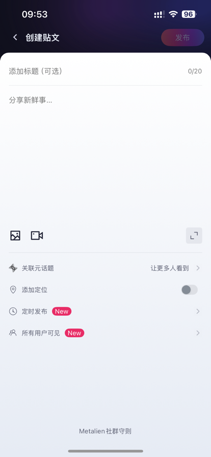 Metalien为重构社区价值而生,是一个由用户社区驱动的内容分享平台。在Metalien中,无论您是想分享您的兴趣爱好,还是在寻找拥有相似兴趣的新老朋友,都可以在Metalien的社区中用全新的方式探索、记录、分享、交流……而您的每一次互动,都将为Metalien社区贡献珍贵价值。 【探索内容】您将在“推荐”中看到我们为您精心挑选的优质内容,其中有一部分将根据您的兴趣为您量身定制。你也可以通过搜索方式寻找到您感兴趣的内容,只要保持探索,我们就能满足您的无限好奇。 【多维创作】随时随地、任何方式、分享灵感。您可以分享文字、心情、照片、声音、视频……等形式的内容,支持2000字超长文本让您可以畅所欲言,向您的关注者展示一个全方位多维度的自己。从现在起,在Metalien上记录你的点滴吧! 【元话题】创建元话题,成为话题主理人,引领内容新风尚。元话题不仅能让您发布内容易于被发现,也可以帮助您快捷的发现更多您感兴趣的内容。当然,在话题广场中,您也可以与您的同好讨论、互动、交流,或者发现更多其他内容。 【轻松互动】Metalien提供流畅的社区互动体验,您可以点赞您喜欢的内容,将内容分享给您的朋友,或者是和社区用户一起在评论区分享您的观点。我们将在消息中心中实时提醒您收到互动消息,让您不会错过来自朋友的关注、喜欢和评论。 【点滴价值】无论您是内容贡献者,还是社区互动的参与者,您在Metalien中的点滴贡献都将以积分的形式被记录和体现。您可以使用Metalien积分推广让您心动的内容,这些积分将直接奖励给优秀的内容创作者。 【联系我们】我们十分重视您的意见反馈,您可以通过产品经理信箱反馈您的使用体验、问题或疑虑,您的建议能让Metalien社区变得更美好!如果您需要更多帮助与支持,您可以通过以下邮件联系我们的用户支持团队:support@metalien.xyz