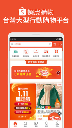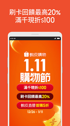 虾皮 1.11 购物节开跑啦! 12/26 - 1/11 一起上虾皮买买买!免运无限次人人有,再加码超商免运券,网购再也不必担心运费,立即上虾皮 1.11 购物节带走喜欢的商品!<br><br>虾皮 1.11 购物节优惠下杀毫不手软,各种优惠券等你拿,满千现折 $100!刷卡再享最高 20% 回馈,加上信用卡专属全站 9 折券,让你买愈多省愈多!最佳的购物体验就在虾皮 1.11 购物节,一起到虾皮购物吧!<br><br>虾皮购物为东南亚及台湾最大的线上购物平台及行动购物 App,提供您值得信赖的支付机制、物流服务,以及友善的操作介面,让您随时随地都能轻松享受购物的乐趣、简单地经营属于自己的卖场!<br><br>全新推出虾皮商城三大保障,正品保障、虾皮安心退、15 天鉴赏期,各式物超所值的商城商品,让您花得更少,买得更好!虾皮购物更提供多种安全可靠的付款方式,包含银行转帐、信用卡线上交易、货到付款、虾皮钱包,和街口支付等多元行动支付管道,交易介面友善好上手,买东西就是如此快速便利。<br><br>还没使用过虾皮购物的您,虾皮为您准备好了专属礼物,下载虾皮 APP 就能获取。不仅有全站 $100 优惠券,更有多样礼物任您挑选,快来领取为您准备好的礼物吧!下载虾皮 APP 一起探索虾皮所提供的不同服务,各式购物需求皆能满足。<br><br>网购总是担心运费?虾皮无限免运人人有!店到店即享有无限次免运服务,让你网购不必担心运费。还在等什么?下载虾皮购物即刻享受虾皮免运吃到饱!<br><br>在虾皮,让您万家商店一次逛足,满足您的各式购物需求,无论是生活必需品、美食伴手礼、饮料饮品、3C 家电、美妆保健、母婴用品等,各种优惠与折扣让你无痛入手所需商品,更能享有多种贴心服务与购物新感受!<br><br>虾皮直播让您即时与卖家互动,了解最完整的商品资讯,更提供您多样专属优惠。除了领取虾币,月月1、17号虾皮直播日再提供您直播优惠,立即上虾皮直播感受最丰富的购物体验。<br><br>虾皮超市给您线上购买日常生活用品及生鲜蔬果杂货的新选择,24 小时全年无休,生活补货立即购,日用品、清洁保养、生鲜熟食、休闲零食、饮料饮品等通通有,不必担心出门人挤人或是拿不动,虾皮超市帮您一键送到家!专属优惠券天天领,让您买得便宜又安心。<br><br>SHOPEE PREMIUM 提供官方经营的专柜品牌,原厂直送正品保障让人好放心。专柜大牌的热门商品在家网购就能拥有,自在又便利。还有 SHOPEE PREMIUM 优惠券供您使用,带走品牌商品不必心痛!<br><br>虾皮超便宜天天铜板价,各种生活小物从此不必再比价,虾皮直接给您超便宜的价格。每周三及周六再提供超便宜限量优惠券,让您省还要更省!<br><br>虾皮18号会员日,给您会员专属超值回馈;25号商城狂购节,让您尽享大牌优惠,还有各式主题日等您探索,月月三档惊喜无极限!<br><br>现在,一起到虾皮购物吧!<br><br><br>无时无刻随时随地,享受买卖东西的乐趣<br>• 浏览虾皮商城 - 网路商店包罗万象,虾皮承诺三大保障安心无虞<br>• 探索每日发现 - 量身推荐专属商品,精准推荐服务比您更懂自己<br>• 挖掘限时特卖 - 一天三档限时下杀,不用出国就能跟上世界潮流<br>• 观看虾皮直播 - 线上互动优惠放送,材质、颜色、款式一目了然<br>• 获取虾币奖励 - 每日签到获得虾币,全站消费可直接折抵好划算<br>• 选虾皮店到店 - 更多元寄取件选择,网购取货更便利运费更便宜<br>• 严选虾皮超市 - 全方位生活必需品,仅需一指轻松购免跑大卖场<br>• 下单虾皮直送 - 品牌夯品快速到货,领券折上折好省好快好放心<br><br><br>资讯透明安全放心、体验优质线上购物环境<br>• 完整透明的商品资讯 - 网路商店评价评论清楚公开,看图爬文网购不踩雷<br>• 安全可靠的付款制度 - 协助托管未完成的订单款项,买卖双方交易有保障<br>• 即时掌控的物流追踪 - 从付款资讯到包裹状态,系统随时更新通知不漏接<br><br>还有更多丰富内容与优质服务,将在不久的未来与虾皮用户见面!<br>-------------------<br>我们需要您的声音-谢谢您让我们变得更好!<br>官网介绍: www.shopee.tw<br>到我们的Facebook粉丝团按个赞: facebook.com/ShopeeTW<br>Youtube搜寻: SHOPEE Taiwan<br>在Instagram上追踪虾皮购物: @shopee_tw<br>搜寻LINE:@Shopee<br>地址:110台北市松山区烟厂路88号9F