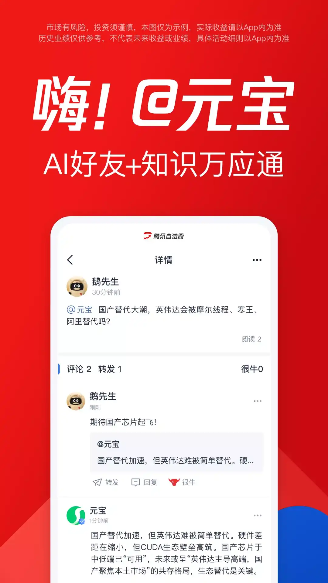 【轻便、简洁、专业的股票分析和交易软件】 腾讯自选股由腾讯官方出品,是一款轻便、简洁、专业的股票分析和交易软件,提供行情、资讯、交易、社区、基金等一站式投资服务,是专业伴你成长的智能投资助手。 腾讯自选股支持沪深港美全球精准实时行情;精选全球财经资讯7*24小时实时推送;与多家品牌券商联合并由券商支持移动在线开户便捷交易;智能策略帮你挖掘深度专业数据,让你投资更有方法;专业数据分析市场股票风险,帮你及时规避雷区;还有伴你成长的温度社区,每日投资话题观点PK。支持QQ或微信一键登录,让你能够随时随地尊享合作券商便捷、高效、优质的证券投资服务。 腾讯自选股可以通过应用市场下载APP,也可以在微信公众号和小程序中搜索“腾讯自选股”使用。 --------为什么选择腾讯自选股?-------- 【腾讯官方出品】轻便、简洁、专业、稳定、安全,是你炒股成长路上可信赖的小伙伴! 【精准看行情】支持沪深基础行情及level2高阶行情,也是首批支持港美实时行情的软件之一,同时支持查看全球重要股指行情、外汇走势、国际期货指数行情数据。 【实时看资讯】依托腾讯内外部资源,聚集全网海量优质财经资讯,提供全天候7*24小时快讯、自选、要闻等多品类资讯服务,精准快速推送,助你第一时间掌握全球财经动态。 【便捷做交易】沪深交易支持由品牌合作券商提供7*24小时在线开户服务,支持沪深市场多家品牌合作券商提供在线便捷交易服务。 【轻松避风险】依托腾讯金融科技实力,基于市场公开信息,汇总呈现沪深全市场股票风险因子信息,帮助你及时规避风险。 【活跃投资社区】聚合海量优质内容,聚合证券产业链相关参与方,包括上市公司、投研机构、基金管理公司、民间草根大V,共同探讨交流。 【创新金融科技】智能策略帮你挖掘深度专业财经数据,让你投资更有方法;智能盯盘捕捉您关注股票的实时信息,助力紧盯股市脉搏。 --------如果您有问题,欢迎通过以下方式联系我们-------- 智能客服:24小时全天候为你答疑解惑,入口:APP内个人中心-智能客服 用户反馈QQ群:306095303 企业合作以及产品相关问题可联系:zxg@tencent.com
