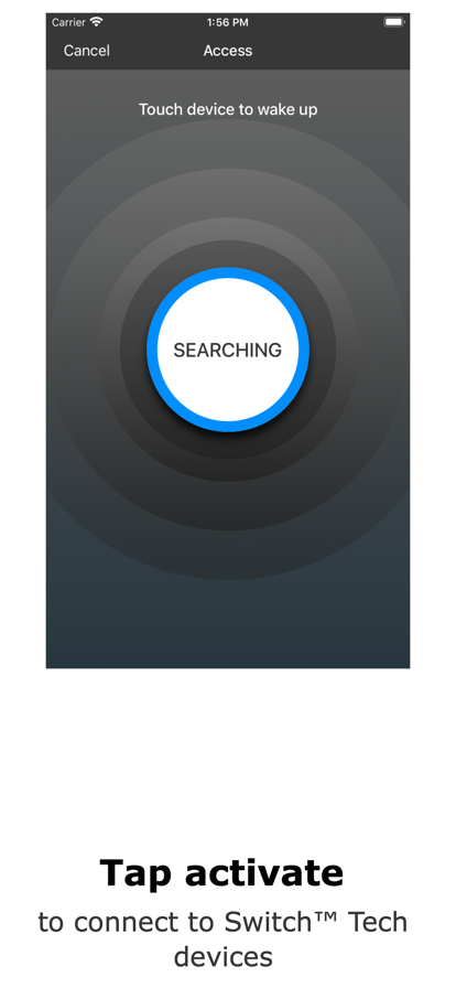 Switch™ Mobile Access brings access control to commercial locks and hardware, transforming doors, cabinets, and more into Bluetooth enabled smart locks. If your building or security system has installed Switch™ Tech, then download this app and request a registration key from the system administrator to receive your access. Simply tap the activate button, touch the Switch™ Core to wake, and twist just like you would a mechanical key once you see a green light. Features: • Background mode to allow access even while your phone is in your pocket • Works with Touch ID and Face ID • Multi-site support with the same app – access your work, gym, or other facilities equipped with Switch™ Tech • Synchronize Switch™ Fob access rights for yourself, your team, or other Switch users • Single application for normal and administrative users – user interface adapts to your role