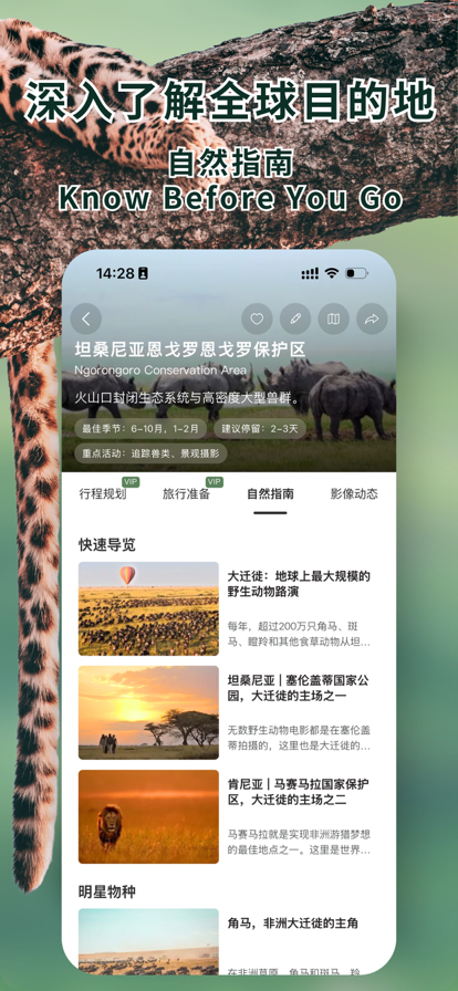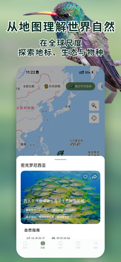 从加拉帕戈斯群岛的进化奇迹, 到非洲草原的野生动物; 从极地海岸的企鹅与鲸类, 到热带雨林中的鸟类与灵长类。 理解世界自然 开始你的下一次探索 熊猫客带你走进地球上最独特的自然地标与生态环境, 通过地图、物种清单与目的地指南, 帮助你在出发前理解目的地的自然背景, 找到属于自己的世界坐标。 #探索世界自然 从地图开始,理解不同地区的自然环境与生态特色。 • 全球自然地标地图,发现各大洲经典自然区域 • 主题地图与生态专题,了解不同地区的自然系统 • 目的地自然指南,出发前理解当地生态与观察机会 #随身携带的自然观察工具 在旅行途中,随时查阅物种信息与观察要点。 • 精选物种清单,帮助识别与记录观察对象 • 物种观察要点与生态背景介绍 • 在自然旅行中建立属于自己的观察记录 #自然旅行决策支持 根据时间、地区与兴趣,找到适合你的探索目的地。 • 根据季节变化寻找最佳观察窗口 • 按主题、区域与生态类型筛选目的地 • 从自然背景到观察机会,更清楚地了解一个地方 #旅行信息与行程准备 帮助你更从容地规划一次自然旅行。 • 目的地旅行信息与注意事项 • 签证与出行准备参考 • 行程规划与装备建议 #自然内容陪伴 在通勤或旅行途中,继续了解世界自然。 • 自然主题音频节目 • 地标与生态故事 • 在日常生活中保持与自然的连接 熊猫客 Know Before You Go ------------------------------------------- 客服支持:pandatrek_app(微信) 商务合作:contact@pandatrek.cn 微信公众号:熊猫客APP精选 网站:www.pandatrek.cn Terms of Use: https://www.apple.com/legal/internet-services/itunes/dev/stdeula/