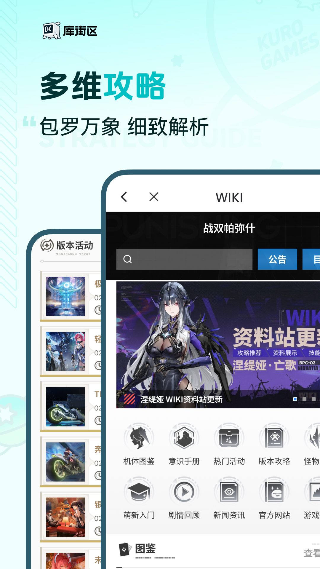 《库街区》是库洛游戏官方社区APP,在这里集合了游戏资讯、社交聊天、实用工具、攻略干货、游戏福利等全方位内容。参与社区专属活动,还有机会获得游戏测试资格。期待与你在库街区相遇。<br><br>【官方社区 一键直达】<br>战双官号入驻!游戏外社区专属活动异彩纷呈,你还在等什么?勾搭构造体就是现在!<br><br>【攻略教学 佳作尽赏】<br>大佬入驻,轻松交流。无论是角色培养还是关卡通关,指挥官想要的,你都可以在此找到。同人太太亲切交流,绘画佳作一键直达。再也不用担心找不到全新内容了!<br><br>【游戏福利 轻松获取】<br>签到就可获取福利?是的!活动角色研发券、养成材料......还有还有,数不清了,指挥官自己来看吧!<br><br>【战绩数据 复盘分析】<br>战双数据,轻松获取。无论是账号资源亦或是囚笼数据,你想看的,都可在库街区一键查询。更多功能持续研发中,指挥官尽情期待哦!<br><br>【专属资格 等你来约】<br>测试信息快速获取,参与社区活动还有机会获得测试资格哦!