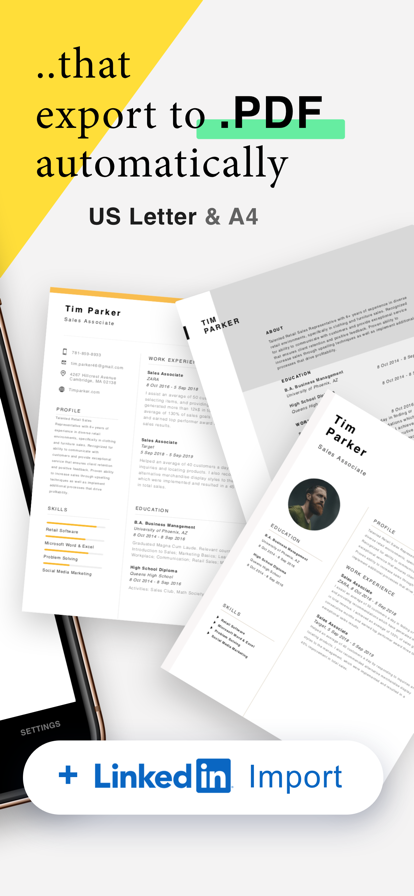 Looking for a free resume builder app? CV Engineer is a simple way to build a PDF resume for your job applications. Featuring helpful examples, advice, and resume templates - all written by a professional recruiter - we ensure you have the perfect CV to impress employers. - 6,100,000 people have used CV Engineer to help them build their resume and find work HOW IT WORKS? Getting started is easy. You choose a professional CV template and then fill it with your info. That's it! We provide examples to help you along the way. FEATURES: *Professional CV templates Choose from a selection of resume templates designed by a recruiter. They’re formatted to make your CV easy for hiring managers to read. *Easy resume editing options and CV writing tools Quickly write and edit your CV. Our resume builder handles the formatting. Use bullet points to show your experience in an easy-to-read format. *Create your own custom CV sections Quickly add sections to your resume with custom titles. Perfect if you have experience that doesn’t fit into traditional CV sections. *Step-by-step advice on how to write each resume section Advice from a professional recruiter on how to write each section of your CV. Make your resume easy to read for hiring managers and avoid common mistakes. *Example CV sections to give you ideas on how to write your resume Looking for inspiration? We have examples for each CV section to give you intelligent ideas on what to include. Example resume sections included for healthcare, nursing, construction, data science, programming, students and graduates, executives, and sales managers. Our resume creator can help whatever your profession! *Resume formatting options - font size, margins Format your CV by changing font sizes and margins. This helps to fit your experience onto 1 or 2 pages (the recommended length for a curriculum vitae). *Download and share your new PDF resume Easily download and share your CV in PDF format. Save to your device, share as an attachment via email, or send your curriculum vitae to your contacts so they can give you feedback. *Add your photo to your CV Upload a professional headshot and add it to your curriculum vitae with our resume creator. *Interview questions and example answers Once you’ve created your resume with our CV maker and applied for jobs, the next step is the interview. We have interview questions, a guide on the STAR technique for answering questions, and example answers. CV Engineer makes it easy to create and send resumes on the go. Our resume builder produces a professionally formatted curriculum vitae using the template of your choice. WHY WE BUILT CV ENGINEER Our free CV maker app was designed by a London based professional recruiter (now a software developer) who wanted to share his curriculum vitae expertise. The resume builder has all of the features you need to create a CV that hiring managers can easily read. We've now added interview questions and answers to the resume maker to help with the next stage of your job search. CV ENGINEER IN THE PRESS Our free CV maker has been featured by multiple news sites including Wired, CNET, and Popular Science. FOLLOW CV ENGINEER Follow our resume creator on social media for more resume advice and career guidance. Twitter - @cv_engineer_hq LinkedIn - CV Engineer FEEDBACK AND CUSTOMER SUPPORT Want to give us feedback on our resume maker or need support? Email us at info@cvengineer.io TERMS OF USE https://www.apple.com/legal/internet-services/itunes/dev/stdeula/ CV ENGINEER IS FREE TO USE CV Engineer's resume builder app is free to use - create a professional resume today!
