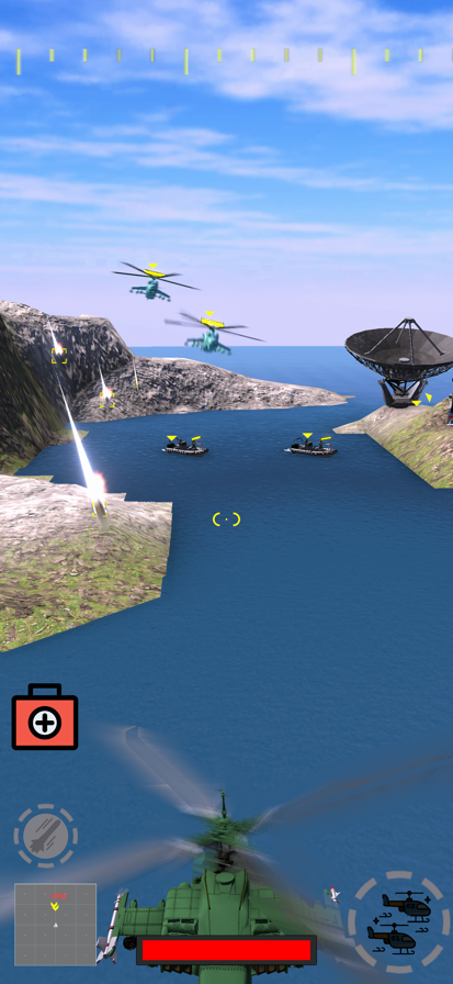 "Pilot an Apache attack helicopter and take command of the skies. Armed with miniguns, missiles, and air support, you'll dominate tanks, jets, and battleships across diverse landscapes—glaciers, towns, skyscrapers, seas, and mountains. Engage in intense, direct action as you navigate the challenges of each environment. Feel the rush of adrenaline as you unleash powerful weaponry and strategically outmaneuver your foes. Your mission is clear: achieve total supremacy. Whether it's navigating through urban canyons or soaring over icy expanses, the thrill of piloting an Apache in the heat of battle is unparalleled. Get ready for an immersive experience where every decision counts. Victory awaits as you face off against the toughest adversaries. Are you up for the challenge? Take control and conquer the skies!"
