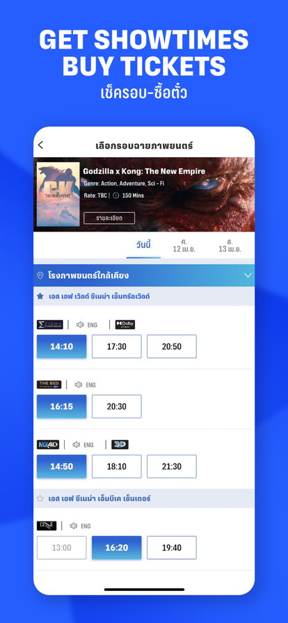 The most convenience application to book/buy/check showtimes for the SF Cinema. A simple app that can help you to check the showtimes, closest location, most recent showtimes, order popcorn or combo-set, and much more! You can also check out new movies and trailers to make sure you don’t miss out on the latest movies in the theatre! SF Cinema is offering you the best experience to make sure that you can seamlessly book the ticket/get the popcorn on the app and walk to the theatre without having to wait-in-line. Quickly get the E-Ticket and your popcorn ticket straight on your mobile phone with no more wait time! Also, link your SF Card for special privileges! Scan the code when paying to receive the special discount. We also offering a fast, secure and safe payment gateway by KBank to book your tickets! The new app also offers these useful features: • Book the ticket in quick, simple steps • Check the showtimes • Watch new trailers • Show nearby cinemas • Purchase Popcorn, Drinks, Combo Set • Check cinema system such as SONY 4K, MX4D, DOLBY ATMOS, ZIGMA • Show the list of upcoming movies • Check the latest promotion offering • Check all the previous E-Tickets • Link SF Card for special discount “Giving People A Great Time” SF Cinema