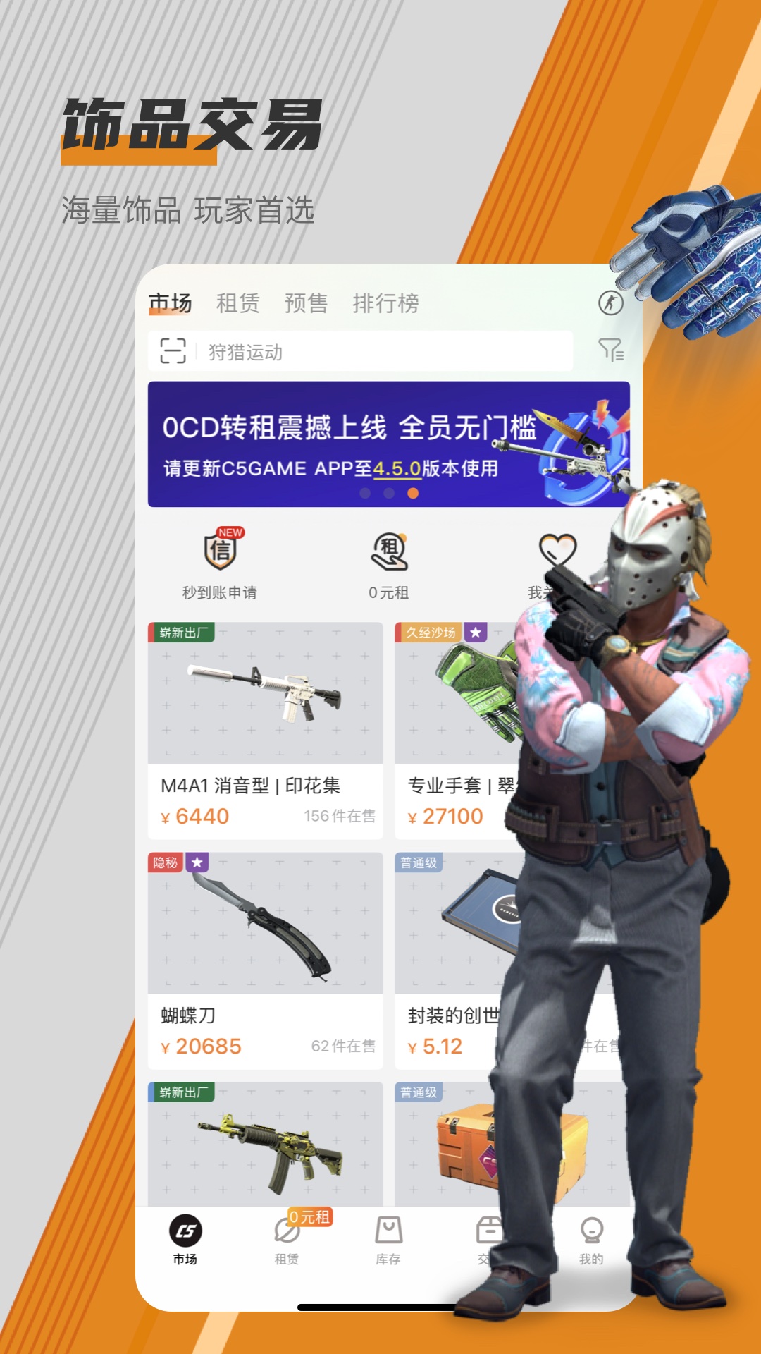 作为行业领先租赁业务的饰品交易平台,悠悠有品为广大Steam游戏玩家创造了焕新、安全、易用的交易环境,当前支持CS2游戏交易。<br>【饰品全面】市场海量商品,饰品款式应有尽有,饰品极速上架,百万玩家的优先选择。<br>【出售迅速】库存上架,边玩边卖,在悠悠有品处理报价安全省心,饰品直达买家库存,交易秒到账!<br>【购买安全】支持购买、求购、还价、批量购买的等多种交易方式,全方位满足购买需求。<br>【出租首选】行业领先出租平台,交易秒成交,更有0CD创新租赁模式,赋能饰品更多租金价值。<br>【租赁省心】平台现金大补贴,周周0元租2次!支付宝信用免押,快捷租赁畅玩饰品!<br>【高清检视】无需启动游戏,随时随地打开手机轻轻一点即可高清检视CS2饰品。<br>【便捷易用】各种贴心功能均免费随心用,库存涨跌、关注收藏、款式筛选、磨损排行、成交记录、价格走势等,更多功能敬请期待!<br>【随时聆听】24小时不间断客服在线解惑,倾听用户意见反馈,快速解决用户疑惑,创造优秀的交易体验!