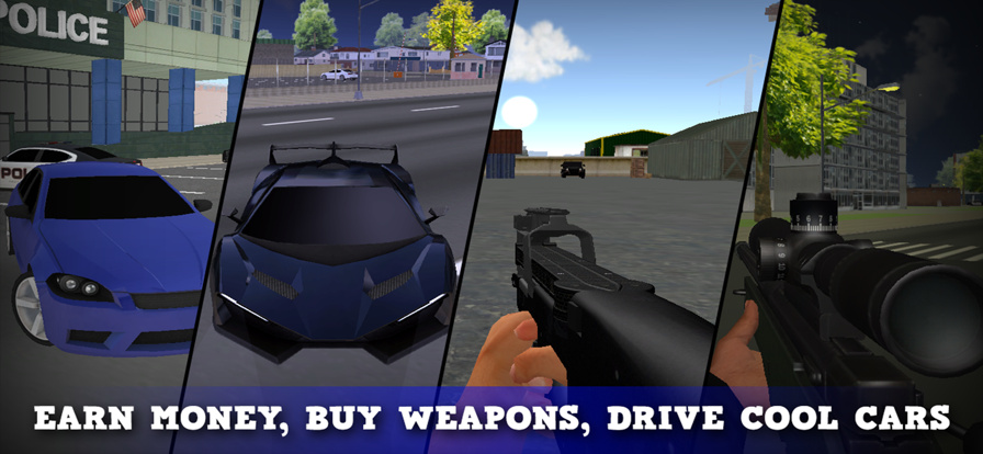 Justice Rivals 3 is a 3D Open World action first-person shooter game where you can select between cops and robbers teams and play in singleplayer and multiplayer heist missions. Every team have own objectives which you will need to succeed to win. In singleplayer you can give orders to your team to follow, stay and more so you can plan your mission to success. Gather your crew in multiplayer and heist amazing places from simple stores and houses to big banks and casinos or play as a cop and fight with the robbers! Have Fun!