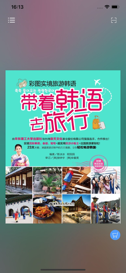 《带着韩语去旅行》官方App(有声点读版) 告别翻译软件,轻轻一点,玩转韩国! 《带着韩语去旅行》是由华东理工大学出版社出版的一系列韩语书籍中的一册。书中涵盖了从登机、订房到前往韩国旅游的衣食住行、购物等多方面主题,配以简单直观的插图、关键词、实用会话,让您轻松地玩转韩国。 全新的移动端《带着韩语去旅行》App,在完整还原纸书内容基础上,添加有声点读功能,您不必再使用翻译软件,根据清晰的插图和中文描述,轻轻一点,保证任何场景下令您 “有话可说”,使您的韩国之行零障碍沟通。 【内容摘要】 23个主题章节,包含了几乎全部韩国旅游场景、攻略 (点击对应场景即可听到真人发音) 【应用特色】 官方出品,保证原汁原味的内容呈现 分类细致,几乎包罗所有韩国旅游场景 有声点读,旅游途中边听边学使用方便 一键支付,免去纸书购买的种种烦恼 本App由华东理工大学出版社联手“阅门户”团队倾情打造。 【联系我们】 e-mail:service@readoor.cn 座 机:029-68518879