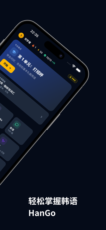 从第一个韩文字母到真实对话,一步步掌握韩语。HanGo 不再只是闪卡应用,而是一套完整的韩语课程,专为其他通用语言应用忽略的难点而打造。 无论你是为了追韩剧、听 K-pop、去首尔旅行、备考 TOPIK,还是寻根学习 —— HanGo 都会根据你的水平,把韩语最棘手的部分讲得清清楚楚。 完整的韩语课程 • 以单元为单位的结构化课程 — 从零基础到日常对话 • 每个单元四种学习方式:Recognize / Practice / Produce / Master • 单元专属指南书 — 语法笔记与文化提示 • 完全离线 — 零流量消耗,地铁里也能学 为韩语量身定制,而非通用应用 • 韩文字母练习 — 24 个基本字母,配助记图像与母语音频 • 敬语练习 — 格式体、해요体、반말一眼对比 • 韩式英语画廊 — 파이팅、셀카、노트북等 35 个外来词来源 • 语法练习 — 助词、量词、敬语词尾等 六种练习方式 • 每个单词都有母语音频的闪卡 • 选择题、配对、单词组装 • 听音选词、听音组词、判断对错 • 间隔重复(SRS)— 在你即将遗忘时精准复习 • 100 个主题句子包,贴近真实对话 • SmartPack — 韩剧、拟声词、商务等精选词汇 • 自定义卡组 — 任何单词都能做成专属卡组 让你坚持下去 • 每日挑战 — 每天一个新小目标 • 连击保护(Streak Freeze)的连续学习系统 • 50 个等级、XP 奖励、40+ 成就 • 学习完成的庆祝时刻 • 按你的节奏调整的智能提醒 • 记录每个单词、每段连击、每次学习的统计页 10 种语言界面 英语、西班牙语、法语、日语、中文、越南语、泰语、印尼语、马来语、菲律宾语。 适合谁 • 完全新手 — 从 안녕하세요 开始 • 韩剧/K-pop 粉丝 — 终于听懂歌词和台词 • 旅行者 — 餐厅、地铁、购物能直接用的短语 • TOPIK I、II 考生 • 重新学韩语的海外华裔 HanGo 免费开始使用。Pro 订阅解锁高级语法练习、精选 SmartPack 和不限量自定义卡组 —— 但核心课程、韩文字母、敬语、韩式英语、每日练习和连击系统永久免费。 한국어, 시작해요 — 一起开始。 Terms of Use: https://app4a.github.io/learn-korean/terms.html Privacy Policy: https://app4a.github.io/learn-korean/privacy.html