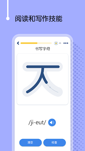 学韩语!提供了一种快速简便的学习韩语读写的方法。<br><br>功能包括:<br>- 所有韩语字符的课程<br>- 可选的写作课程<br>- 可选的打字课程<br>- Easy Show and Quiz风格的教学方法。<br>- 个性化的评论系统。<br>- 音频发音。<br>- 不需要网络访问。