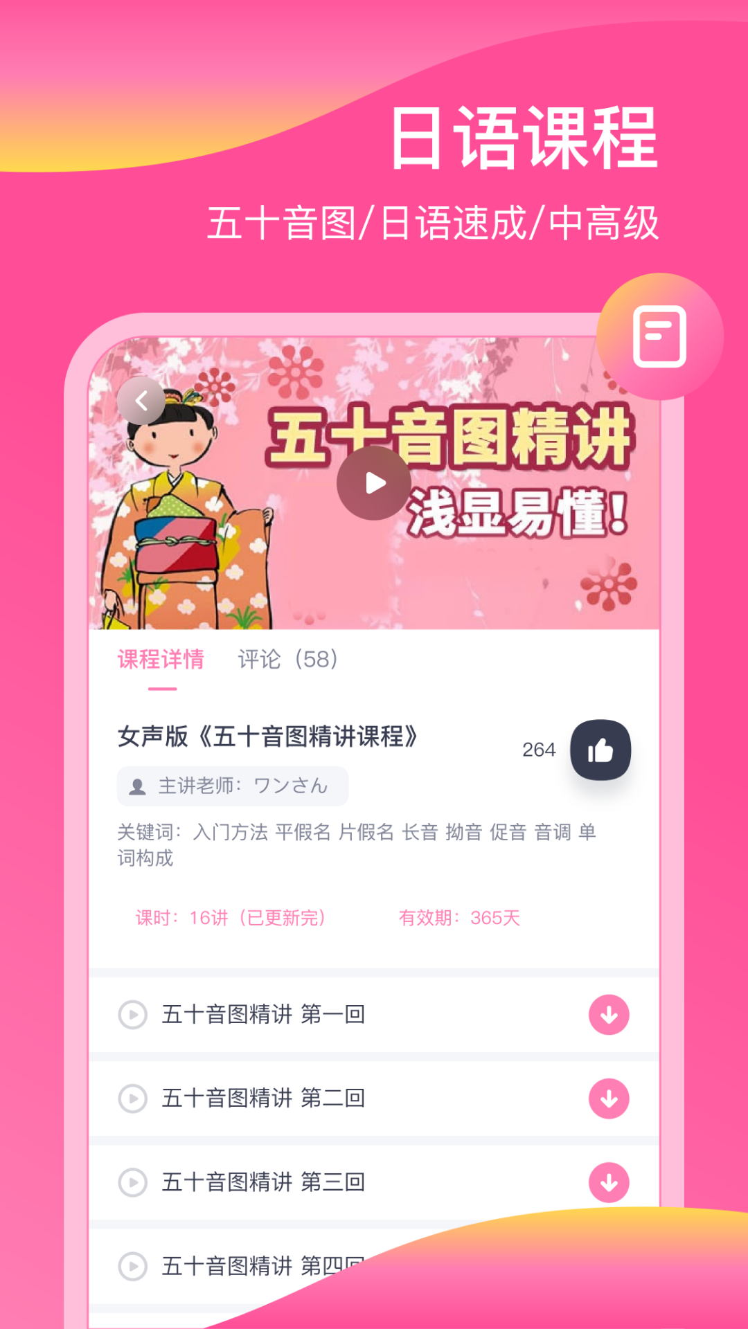 韩语发音学习!<br>******************<br>【韩语发音表】<br>韩语字母发音表针对韩语初学者和自学韩语者开发的韩语发音表,以表格的形式直观的展示韩语发音表。<br>功能介绍:<br>-包含21个元音和19个辅音的发音,以及发音技巧<br>-包含480个韩语字母,点击每个字母都可以发音,每个常用韩语字母都包含单词例子以及纯正发音<br>-包含27个韩语收音的发音技巧以及相应的例子<br>-包含韩文文字的起源和韩文元音和辅音的造字原理<br>-支持离线学习<br><br>******************<br>【韩文基础发音及口语课程】<br>以韩语入门必学的韩文字母发音以及对应的单词例子,还有日常对话常用用语为基础,精心详细编排课程。以听、说、练的方式,让同学们在非常短时间内,快速掌握韩语发音。<br>功能介绍:<br>-课文朗读,学习韩语非常有效的方式,就是不断反复收听韩语课文朗读<br>-口语练习,当收听韩语课文朗读到熟悉的程度后,即可自己练习发音,学韩语就是要大声说出来。<br>-课后练习,检验自己是否真的掌握了<br>-支持离线学习<br><br>******************<br>【韩语语法课程】<br>学习了韩语发音,想要读懂韩语句子还是不够的,还要学习韩语语法。本韩语语法课程覆盖了日常常用的基础语法,学完以后,读懂基本的韩语句子无压力!<br><br>******************<br>【韩剧常用短语】<br>精选了韩剧里常用的短语,爱豆们说的话,是不是更容易记住呢!有爱豆们的陪伴,让你在学习韩语的过程中乐趣无穷!