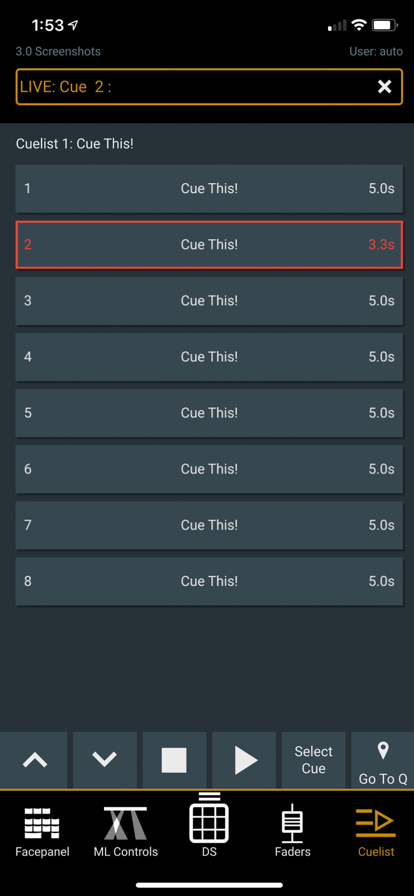 The iRFR from ETC provides a remote for any Eos family lighting system (Eos, Eos Ti, Gio, Gio @5, Ion, Element and Eos/Ion Remote Processors). This application requires Eos family software 2.6 or higher on the connected lighting system. Eos 3.0 or higher is required for Focus Wand Please note the iRFR is NOT support by Cobalt. The iRFR supports most features needed for programming and playback. It does not support remote patching and system configuration. A tab-based system changes the displays from the full keyboard, moving light controls, direct selects, playback tools and a cue list. Security controls prevent un-authorized access to a lighting system.