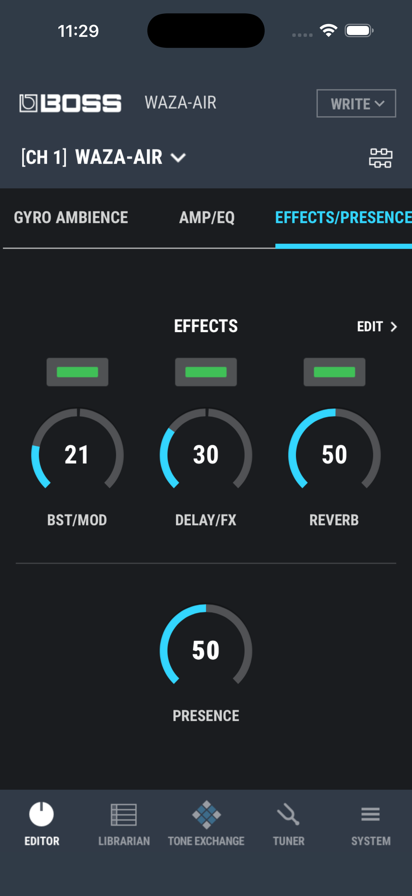 BOSS TONE STUDIO dedicated for WAZA-AIR https://youtu.be/v6n--QJ2QUI ●Connect the BOSS WAZA-AIR and your iPhone/iPad via Bluetooth to use this app. * BOSS WAZA-AIR is necessary to use this app. *Set up the Bluetooth connection in the Connection window displayed after the app is launched. ● BOSS TONE STUDIO incorporates convenient functions; ‘Download Function of Additional Tones (Livesets)’, ‘Tone Edit Function’, and ‘Tone Librarian Function’. ●This app provides an integrated access to the BOSS TONE EXCHANGE. Support share your original Livesets and download users Livesets around the world. *An active internet connection is required to access the Boss Tone Exchange.