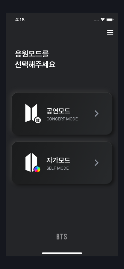 방탄소년단 공식 응원봉 BTS OFFICIAL LIGHT STICK의 모바일 앱입니다. 본 앱은 아미밤V3와 아미밤SE 버전을 모두 지원합니다. [주요 기능 안내, MAIN FEATURES] 1. 공연모드 티켓 좌석 정보 등록 후 응원봉과 연동하면, 공연 중 다양한 응원봉의 무대 연출을 즐기실 수 있습니다. 공연이 있을 때만 사용 가능한 메뉴입니다. 2. 스마트폰 블루투스 연결 응원봉의 스위치를 아래로 내려 블루투스 모드로 맞춰주세요. 스마트폰의 블루투스 기능을 켜고 응원봉을 스마트폰 화면에 가까이하면, 응원봉과 스마트폰이 연동됩니다. 일부 스마트폰에서는 GPS를 켜야 블루투스 연결이 가능합니다. 블루투스 연결이 되지 않는 분들은 GPS 기능을 켜주시길 바랍니다. 3. 셀프모드 스마트폰과 블루투스 모드로 연결 후, 스마트폰 화면에서 직접 원하는 컬러를 선택하시면 응원봉의 컬러가 변경됩니다. 4. 배터리 잔량체크 "셀프모드" 상태에서 하단 버튼을 클릭하면 응원봉의 배터리 잔량 확인이 가능합니다. 배터리 교체가 필요한지 확인해 주세요. [공연 관람 전 주의사항] - 공연 관람 전, 본인의 티켓 좌석 정보를 확인하여 응원봉에 좌석 정보를 입력해 주세요. - 응원봉의 무선 연출이 제대로 작동하지 않는 경우, 응원봉을 페어링 하지 않았거나 페어링 과정을 완료하지 않은 것이 원인일 수 있습니다. 앱을 통해 응원봉과 좌석 페어링을 완료해 주세요. - 반드시 응원봉에 등록한 좌석 정보와 같은 좌석에서 공연을 관람해 주시길 바랍니다. 임의로 다른 좌석으로 이동하게 되면 응원봉 무대 연출이 달라질 수 있으니 주의해 주세요. - 공연 도중 응원봉의 전원이 꺼지지 않도록, 공연 전 배터리 체크를 해주세요. - 응원봉의 무대 연출을 위해, 공연 관람 시에는 반드시 좌석 정보 등록이 완료된 응원봉의 스위치를 위로 올려 “공연모드”로 설정해 주셔야 합니다. - 공연장에서는 페어링 부스를 운영할 예정이오니, 응원봉에 좌석 정보 입력이 어려우신 경우 페어링 부스를 방문해 주세요. - BTS OFFICIAL LIGHT STICK의 공연 연출은 전 세계의 공연에서도 진행 예정입니다. [앱 이용을 위한 필수 접근 권한 안내] 앱과 응원봉의 원활한 이용을 위하여 아래 권한을 필요로 합니다. 안내 팝업이 뜨면 [허용] 해주세요. - 저장 공간: QR/바코드 및 공연정보 위해 사용 - 전화: 기기의 인증 상태를 유지하기 위해 사용 - 카메라: QR/바코드 인식을 위해 사용 - 블루투스: 응원도구 연결을 위해 사용 - 위치: 블루투스 연결을 위해 사용 This is the mobile App for the BTS OFFICIAL LIGHT STICK. This app supports both ARMY BOMB V3 and ARMY BOMB SE versions. 1. CONCERT MODE Enter your concert ticket information and pair your light stick. You can enjoy various stage effects during the concert This menu will be enabled several days prior to a concert. 2. CONNECTING WITH BLUETOOTH ON YOUR SMARTPHONE Move the switch down on the light stick to set it to “BLUETOOTH MODE”.. Turn on the Bluetooth function on your smartphone and hold your smartphone close to connect them. Some smartphones require you to turn on GPS to enable Bluetooth connectivity. If you can not connect to Bluetooth, please turn on the GPS function. 3. SELF MODE After connecting with your smartphone with Bluetooth, touch a color you want on the screen. The light stick color will change accordingly. 4. BATTERY CHECK While in “SELF MODE”, select the button on the bottom of the screen to check the battery level of your light stick. Check if you need to replace the battery. [NOTICE] - Check your seat information on your ticket before the concert and enter it on the light stick in advance. - If the light stick does not work properly, the cause may be due to not pairing your light stick or not completing the pairing process. Please complete the pairing of the light stick and the seat through the app. - Please be seated in the same seat where you registered for the light stick. Moving to a different seat may cause different stage appearance. - Check the light stick battery in advance to prevent turning off during the concert. - To take part in the light stick production, be sure to register your light stick via the mobile App and set the light stick switch to “CONCERT MODE”. - There will be Paring Booths located in the concert venue. If you need help registering your seat information, please visit a Paring Booth. - Stage production integrating the BTS OFFICIAL LIGHT STICK will be featured in shows throughout the world, including the United States and Europe. [Required access permission] To use the app and the light stick, the following permissions are required: - Device Storage: save QR code/ seat info etc. - Phone: read phone status and identity - Camera: take pictures of QR/barcode - BLE: connect light stick - GPS: connect BLE