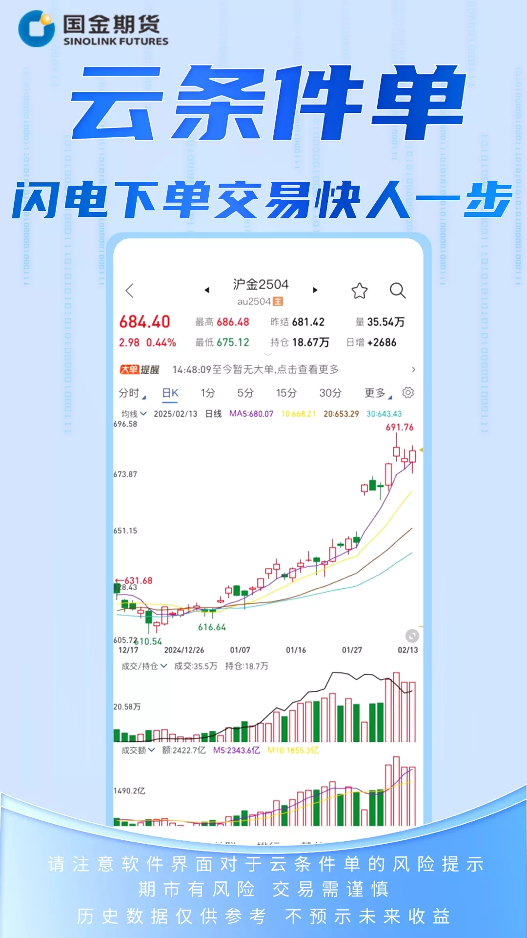 国金期货金赢掌APP是一款集期货行情、期货免费开户、期货资讯、期货投资、投资者教育等为一体的专业期货开户交易投资软件。 【公司介绍】 国金期货是国金证券(SH:600109)股份有限公司全资子公司,注册资本3亿元人民币, 具备商品期货经纪、金融期货经纪和期货投资咨询、资产管理业务资格。 【产品优势】 ●期货开户——免费极速开户,安全无缝对接原油、黄金、股指期货等各类期货投资品种 ●预约开户——24小时免费线上极速预约开户 ●期货交易——支持云条件单、止盈止损单 ●期货行情——实时精准的期货行情,行情速度居行业前列,刷新速度毫秒级响应 ●期货资讯——专业研究报告精准推送,实战干货直播满足视听味蕾 ●期货投教——提供丰富期货投教知识,为每一位客户配备一对一服务经理 即刻下载,开启国金期货贴心服务体系之旅,尊享个性化的资讯、工具、理财和服务。 【联系我们】 官 网:https://www.gjqh.com.cn 服务热线:4006821188 投资有风险 入市需谨慎