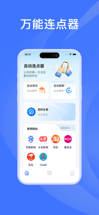 这是一款集多种实用功能于一体的 iOS 工具应用,一站式覆盖自动化操作、滚动字幕等核心需求。 界面简洁直观,轻松适配日常工作与生活的各类使用场景。 其中的自动连点器功能,更是精准触控的效率利器,彻底解放你的双手! 厌倦了机械重复的屏幕点击?这款智能连点工具,就是你的终极解决方案!它轻便无负担、功能强大且操作精准,让每一次点击都高效省心。 无论你是想自动连点完成任务、执行复杂的多频次点击操作,还是需要定时刷新页面内容、实现精准的单次触发,所有需求都能一键搞定。 核心功能亮点 自动连点 & 多次点击 自定义点击频率与次数,无论是 APP 功能测试,还是日常打卡、任务闯关,都能轻松应对。 单次点击 & 自动刷新 告别手动重复操作,大幅提升网页浏览、信息获取的效率。 自动滚动 无需手动滑动屏幕,即可流畅浏览长文、列表与动态信息流,阅读体验更舒适。